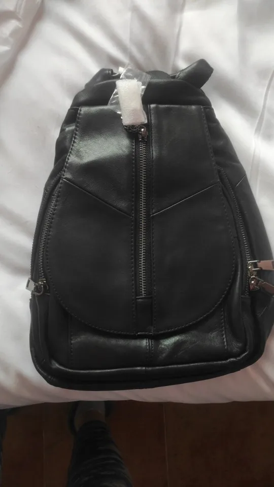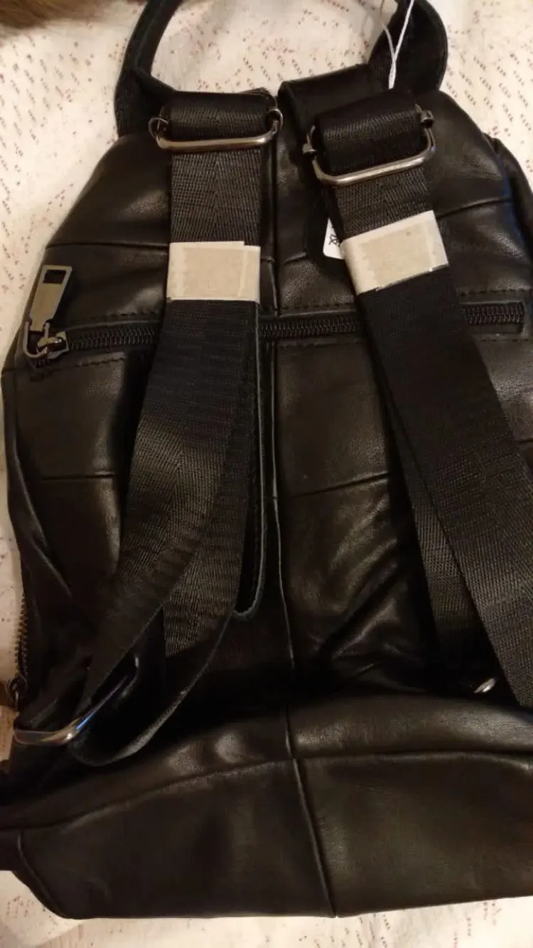 Рюкзак действительно кожаные, хорошего качества. Много карманов, размер не большой и не слишком маленький как раз как небольшая сумочка. Ремни не кожаные как и было в отзывах. Мне понравился. Быстрая доставка.