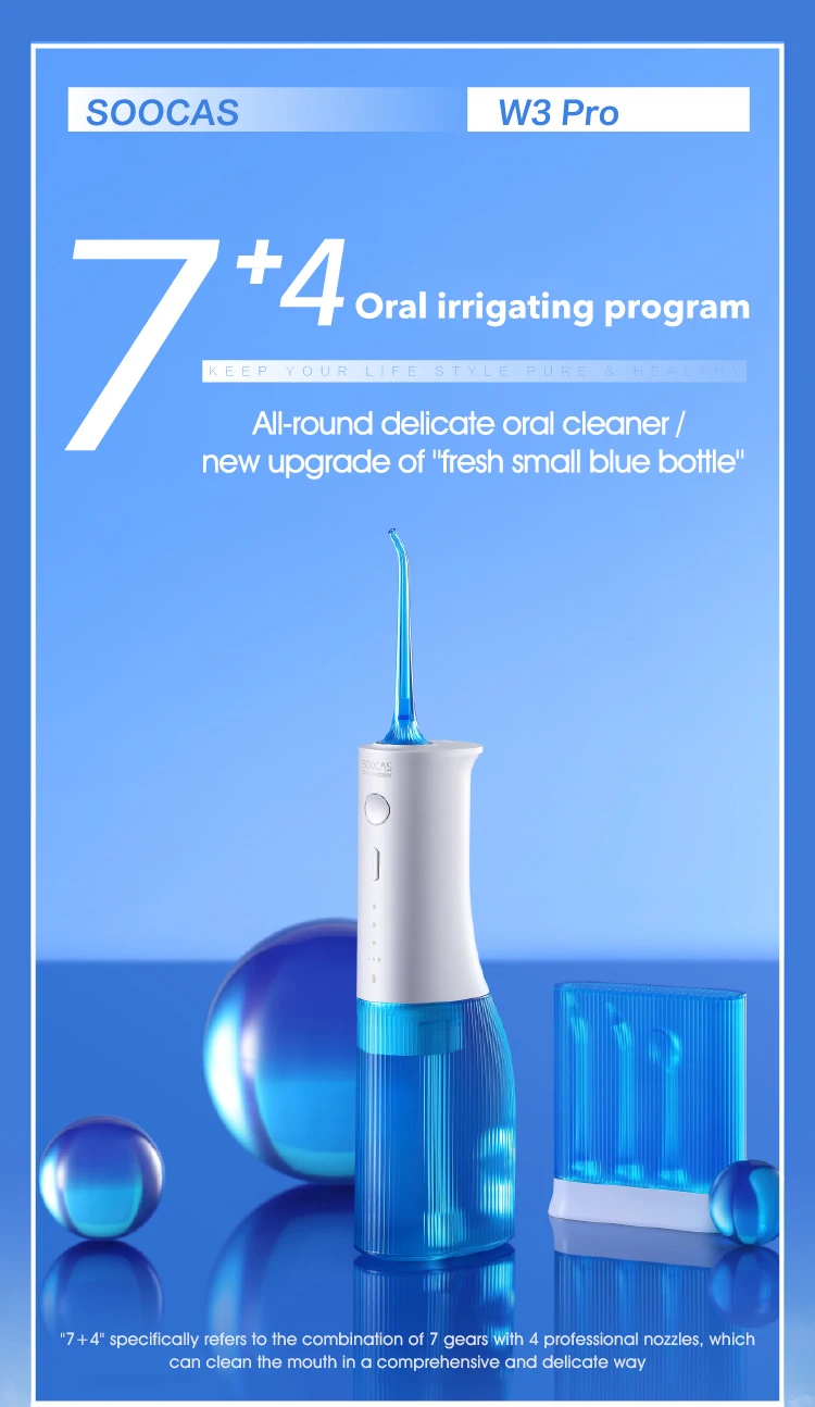 Ирригатор для полости рта SOOCAS W3 переносная зубная вода, аккумуляторный, водонепроницаемый, 4 режима очистки