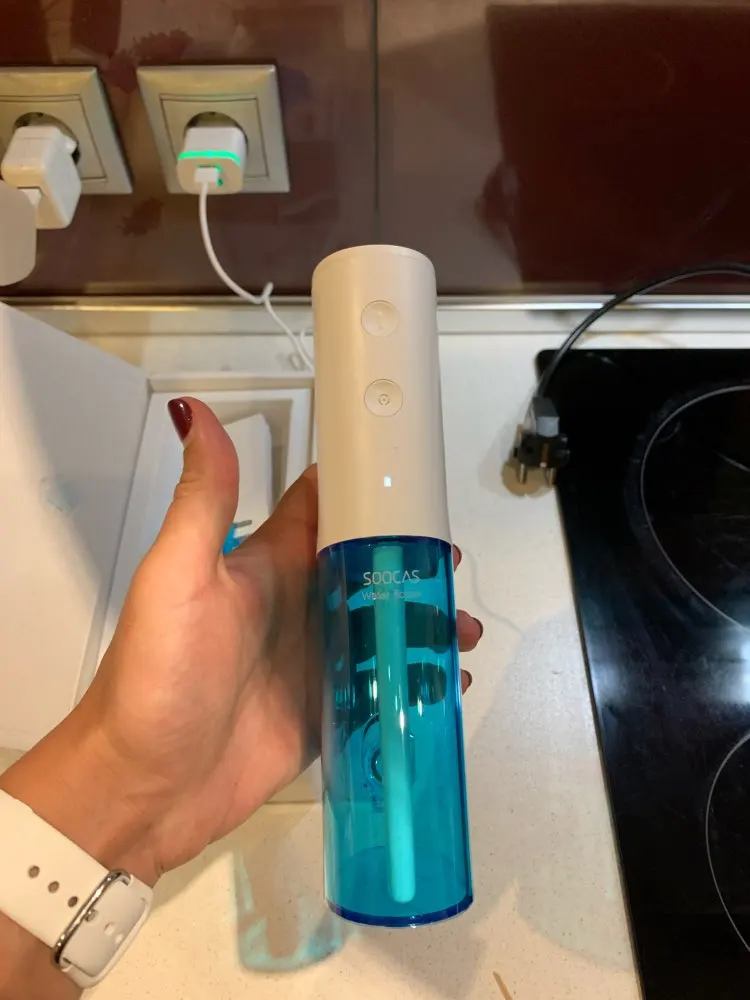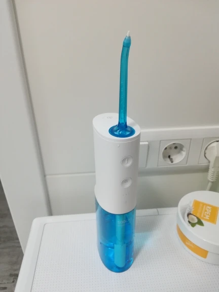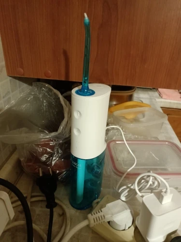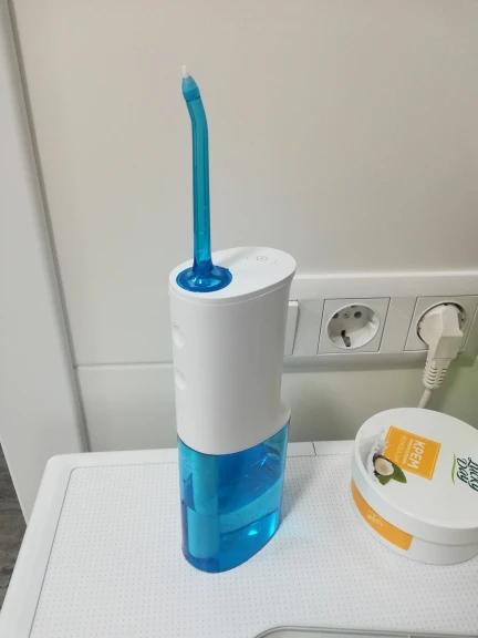 Ирригатор отлично работает. Самый тяжелый поток может быть даже слишком жестким. Полного бака достаточно для одного периода очистки. Подключение к зарядке не является стандартным.