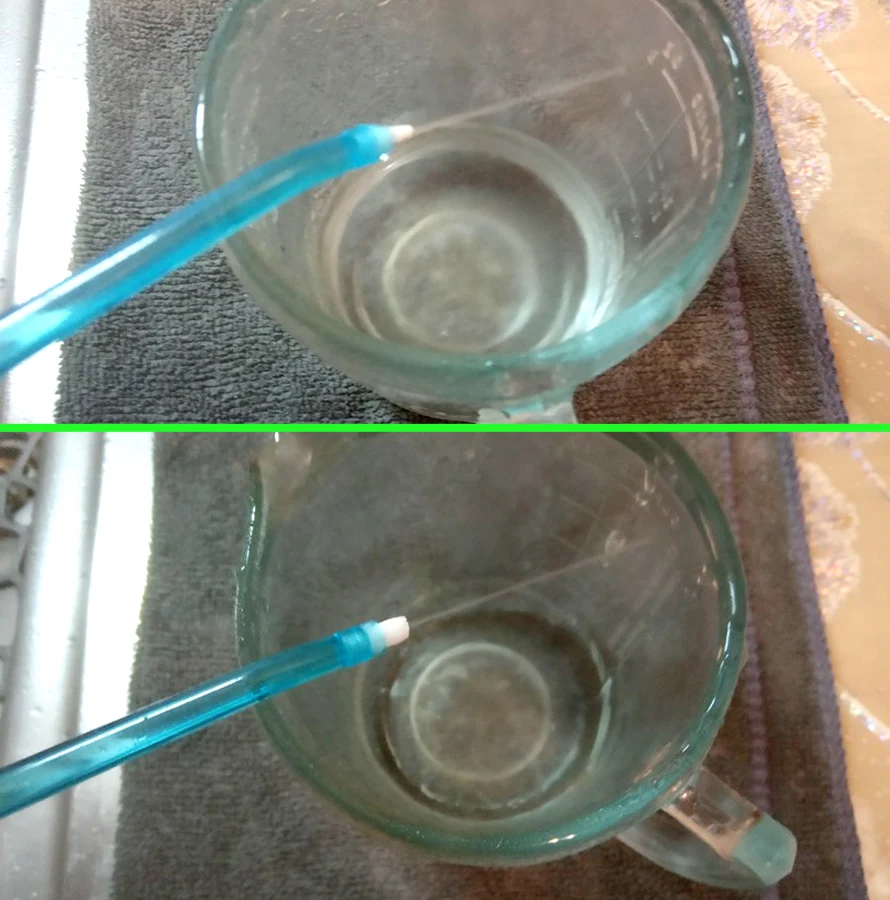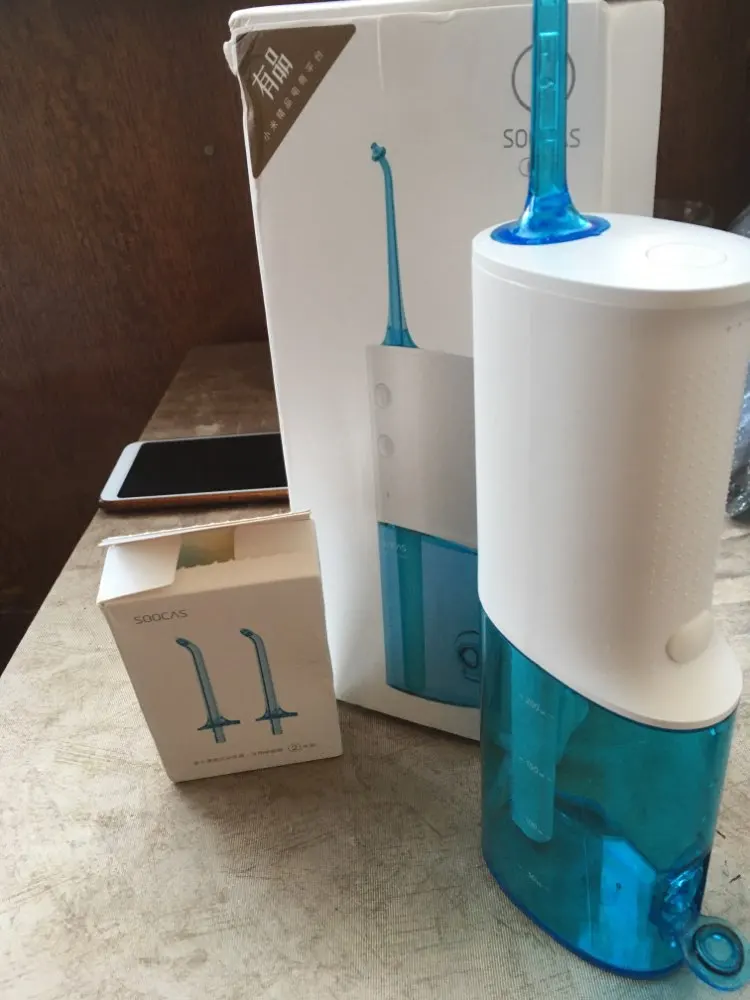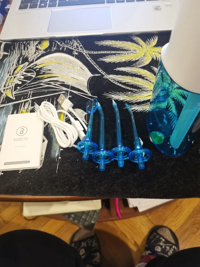 Доставили за неделю. Ирригатор работает. Струя воды бьёт очень прилично. С непривычки сильно отшиб сам себе язык (даже на слабом режиме). Одного бачка воды на чистку дёсен не хватило. Заливать пришлось ещё дважды. Особой разницы в насадках я не заметил, лишь совсем-совсем немного различается толщина струй. Во время процедуры изо рта сильно течёт вода, поэтому всё надо делать над раковиной.