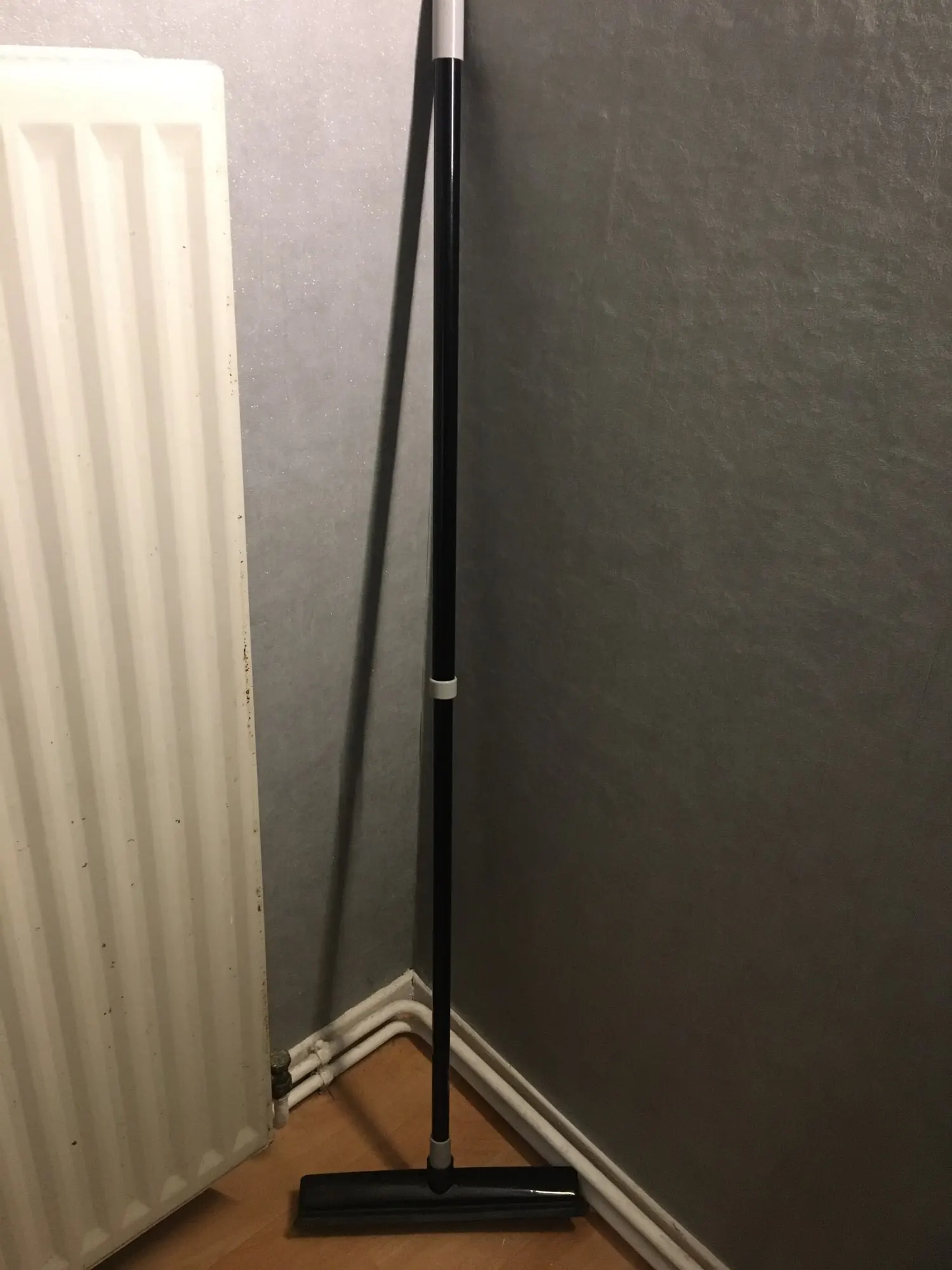 Хорошо работает на коврах для снятия волос, быстро промывает под водой, выдвижная ручка, но все еще немного коротковата для тех, кто высокий более 1,70 м, немного неудобно на полу, потому что немного течет, но остается отличным продуктом, также имеет боковую «лопатку», чтобы вытянуть прямую воду на полу.
