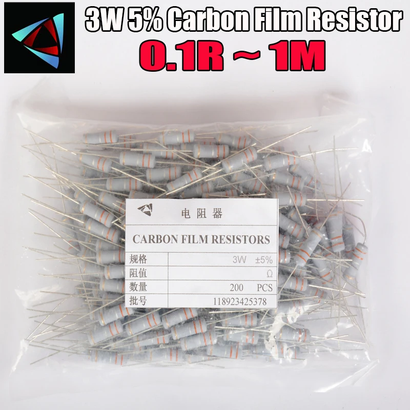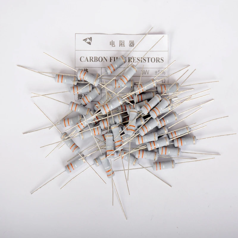 100 шт. 3 Вт карбоновый пленочный резистор 5% 4,7 R 1M 1R 4.7R 10R 22R 33R 47R 1K 100K 10K 0,22 K 0,33 0,68 металлоксидный пленочный резистор
