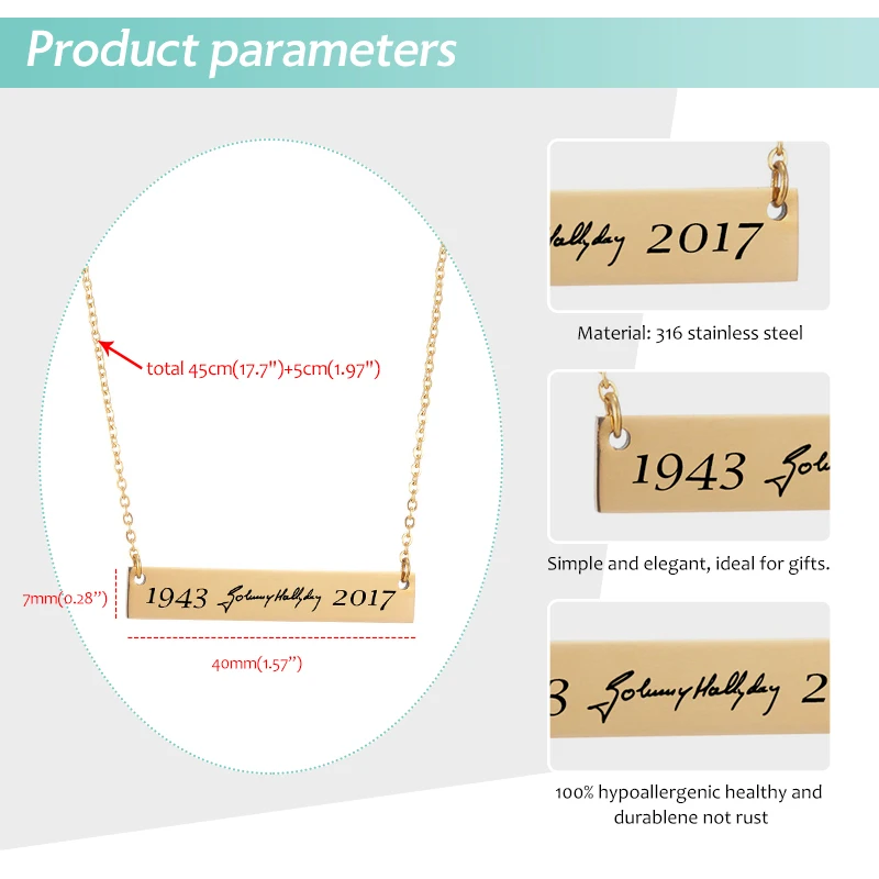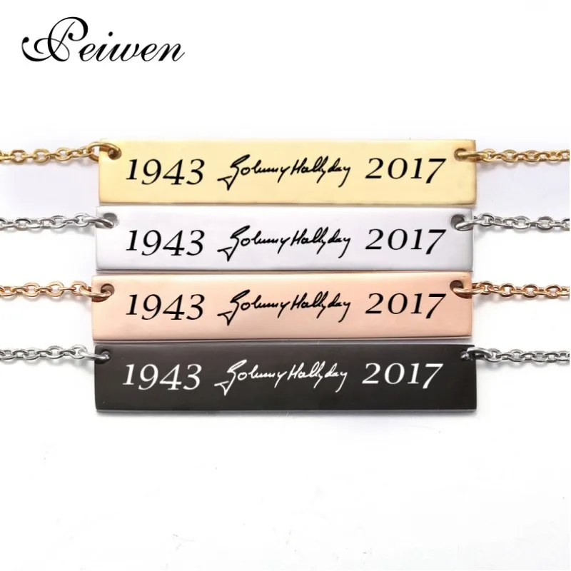 Модные Джонни Холлидей Подпись кулон-табличка с именем шейный платок из нержавеющей стали ID бар для мужчин и женщин пользовательское имя ожерелья ювелирных изделий