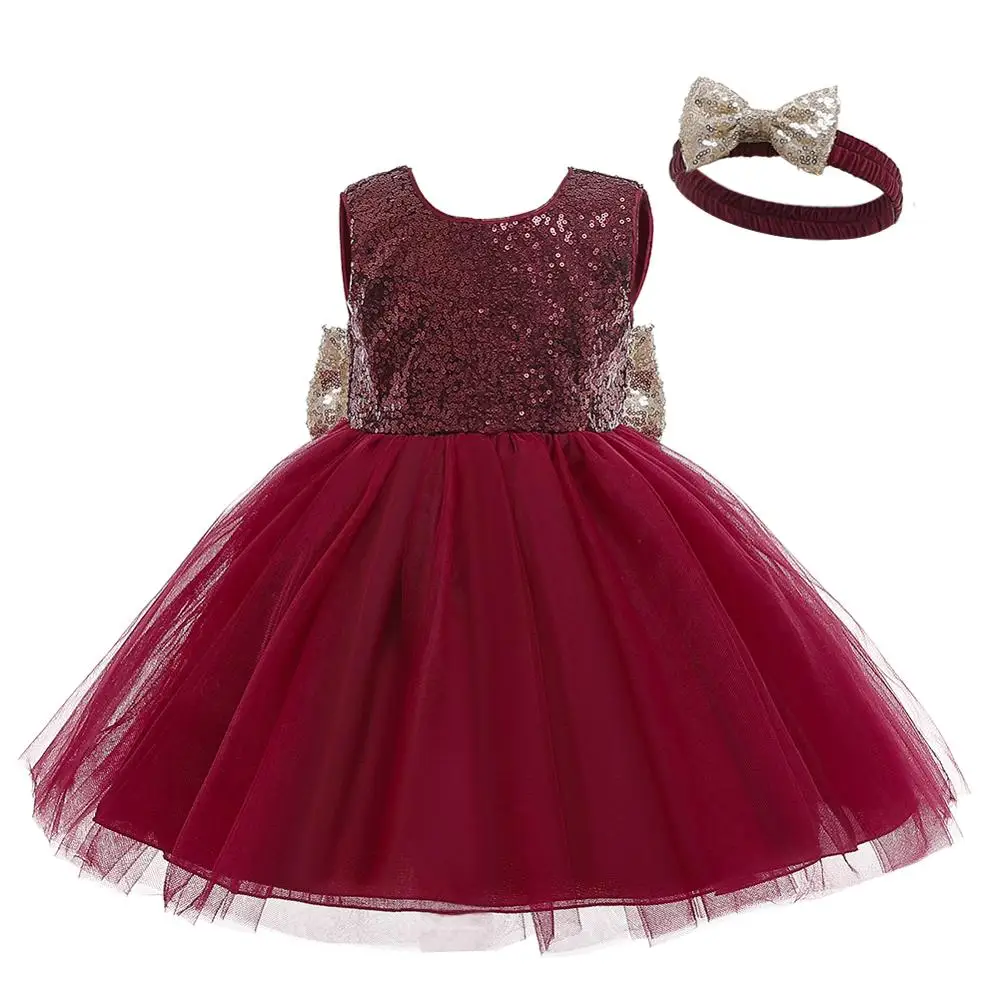 Платье для маленьких девочек на 1 год, день рождения, платье с бантом и блестками для девочек, вечернее и свадебное платье, одежда для новорожденных принцесс на 3-24 месяца