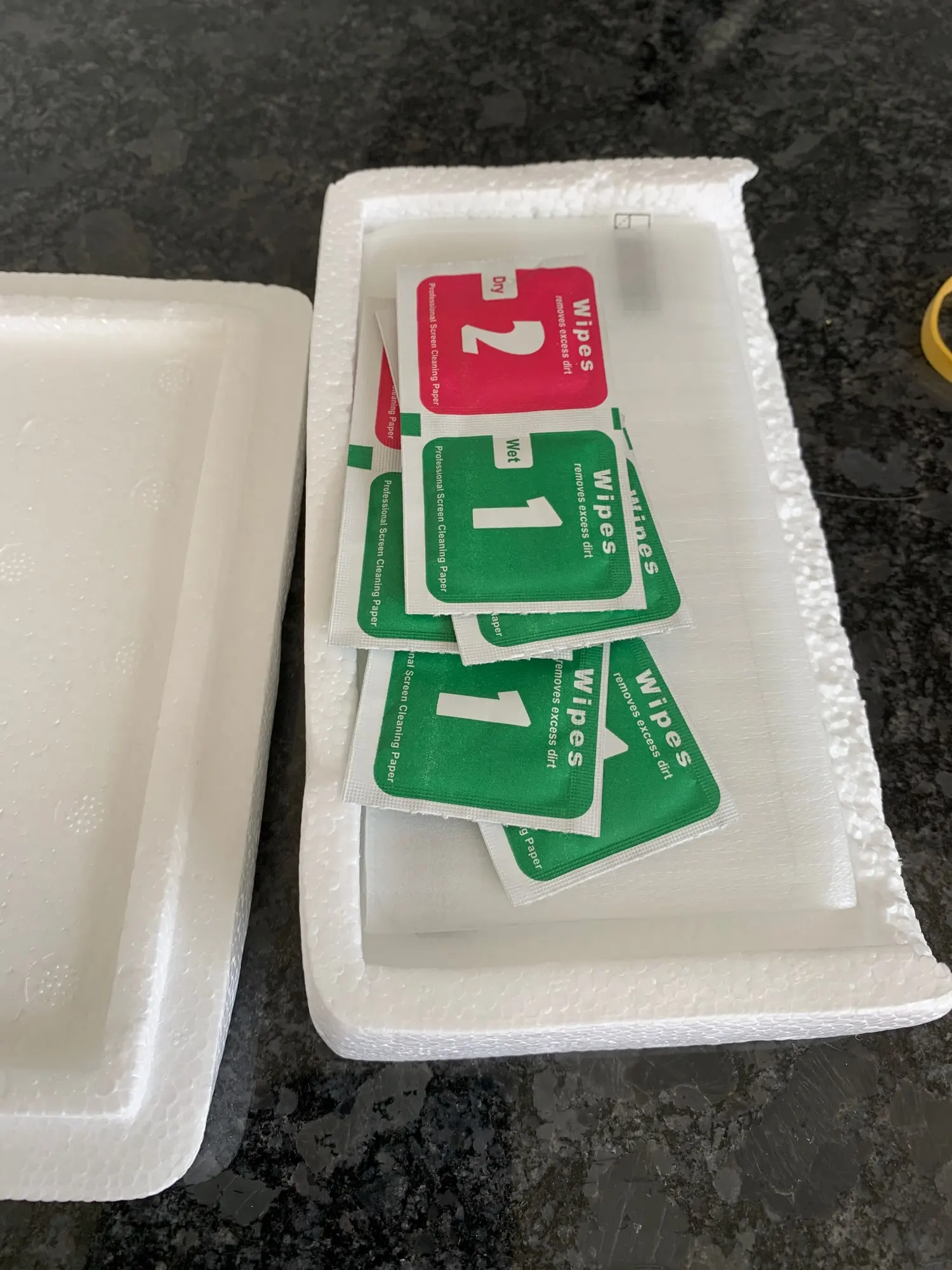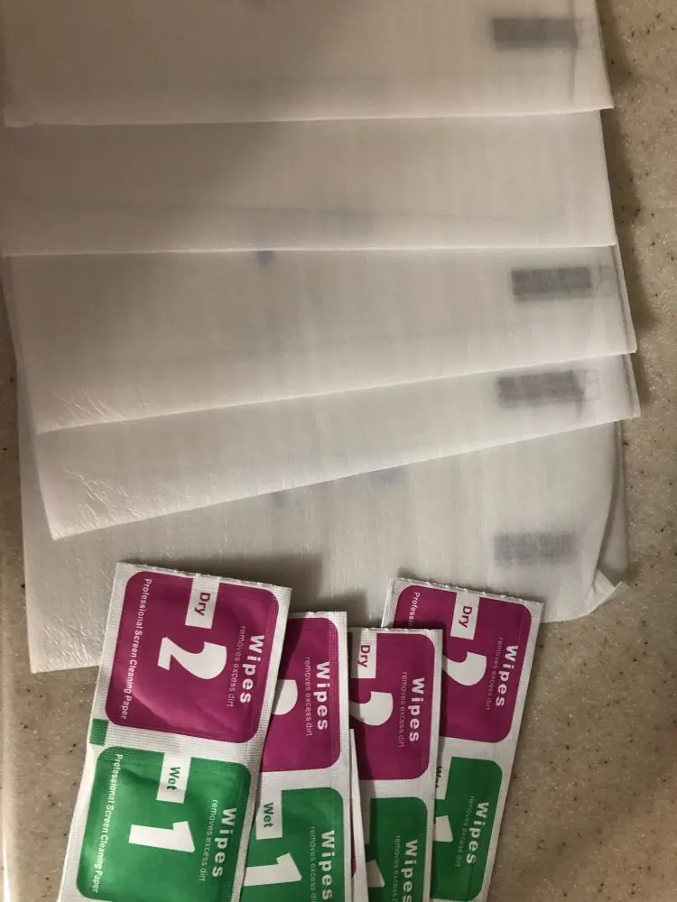 Заказ пришел в Украину быстро. У разных продавцов заказывала ещё товары, так посылки объединили, всё пришло в одном пакете на Новую почту. Слева старое стекло, а справа стекло то что заказывала. Так вот стекла для iPhone XS Max не на весь экран. А так упаковано хорошо, салфетки есть, все стекла целы. Продавец хороший.