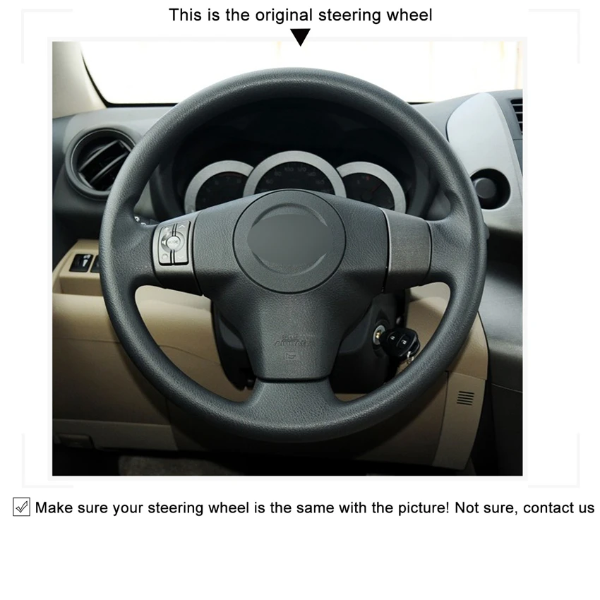 Примечание 1. Материал изделия: Искусственная кожа (микроволокно), если вам нужна натуральная коровья кожа, пожалуйста, свяжитесь с нашей службой поддержки клиентов или найдите ее в магазине weblink. Примечание 2. Перед заказом проверьте и сравните рулевое колесо автомобиля с рулем на картинке. Примечание 3. Изделие не является рулевым колесом, только Кожаные чехлы на руль. Включает в себя прошитую нить крышки, иглу и введение установки.