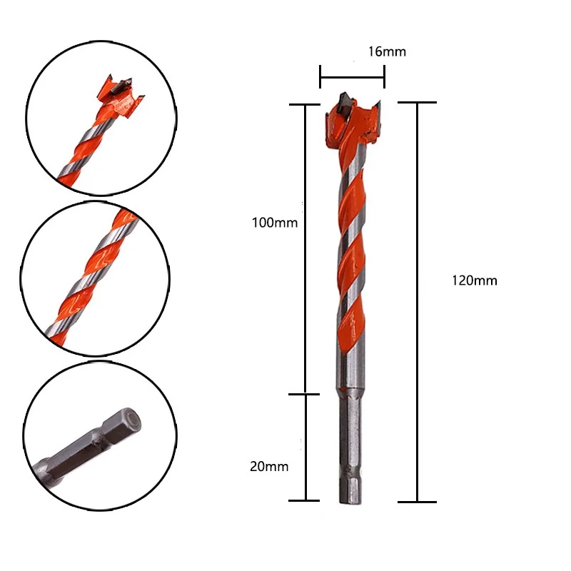 16 мм 18 мм 20 мм 25 мм профессиональное деревообрабатывающее сверло длиной 125 мм Полная длина сверла 6,35 мм шестигранный хвостовик