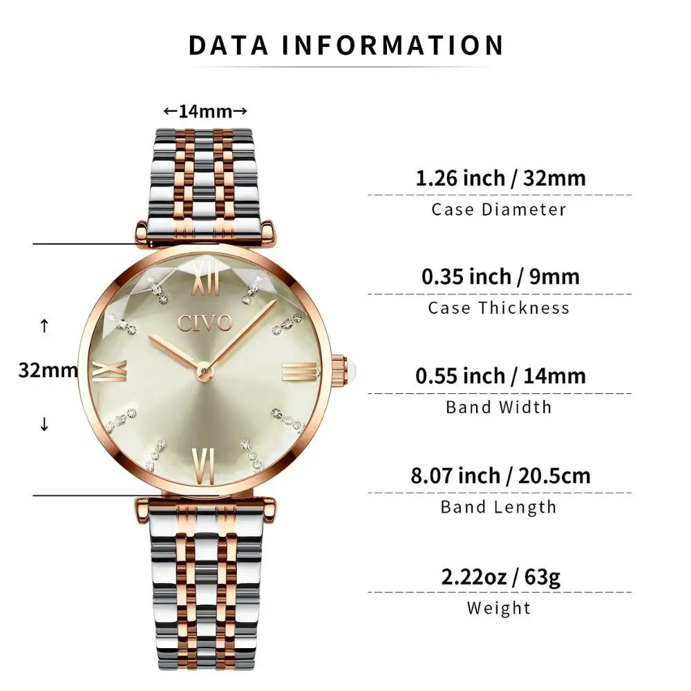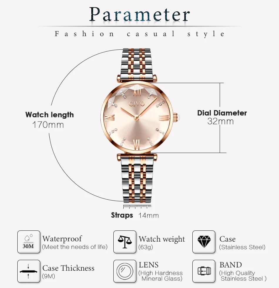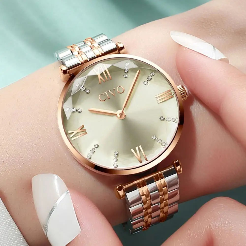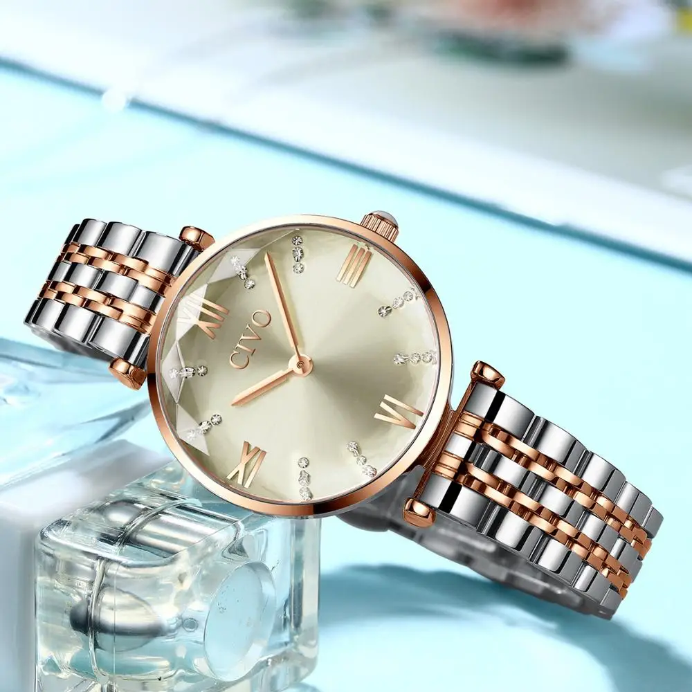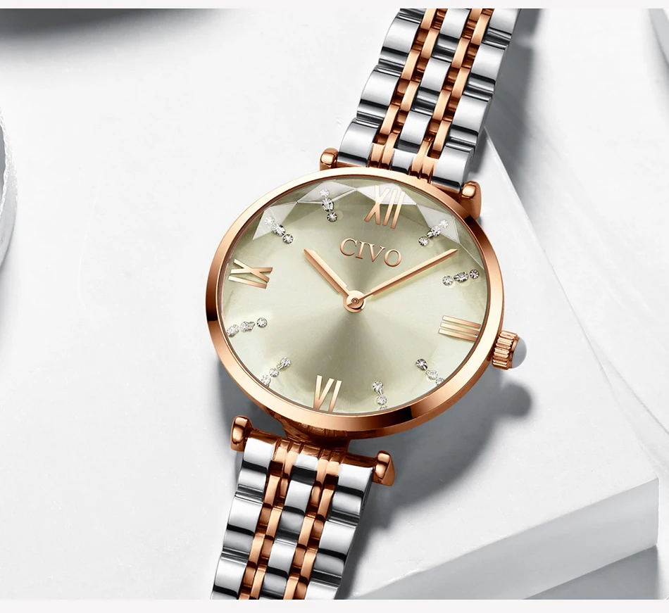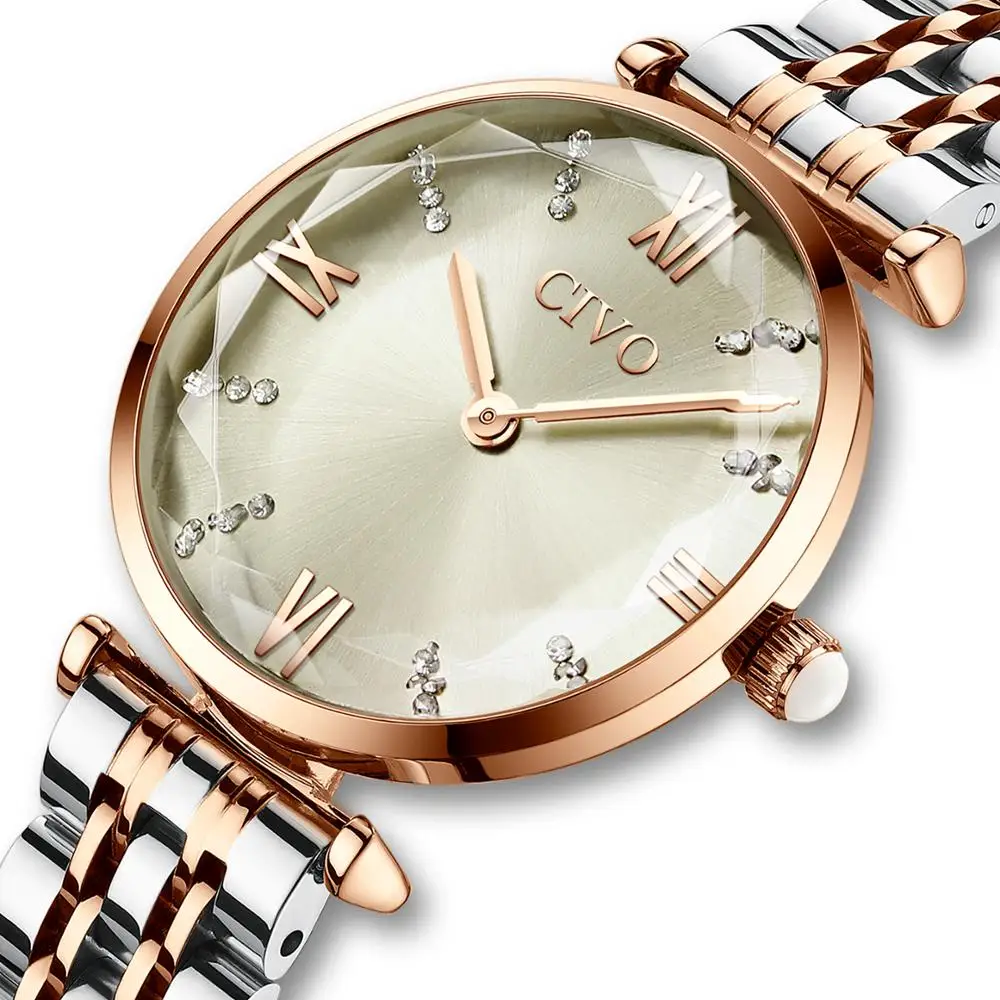 Часы наручные CIVO женские, модные роскошные брендовые водонепроницаемые часы-браслет из розового золота со стальным ремешком, 2021