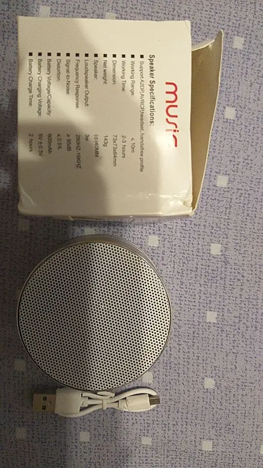 A caixa de som veio bem embalada, chegou antes do prazo, mas a caixa do produto não traz muitas informações de como usar. Ele toca rádio FM e não explica como usar mas é só colocar o cabo de carregamento que vem com a caixa na entrada USB, escolher modo FM e sintonizar (tem vídeos no You Tube explicando). Tem entrada USB e mini USB, além da entrada para cartão mini SD. Conecta com o celular via bluetooth sem problemas. Está carregando perfeitamente (precisa de um carregador de celular para carregar). Embaixo da caixa de som, tem uma superfície emborrachada, evita que ele derrape onde estiver apoiado. Deixo feedback adicional falando sobre duração da bateria e tempo de carga. Recomendo o vendedor!
