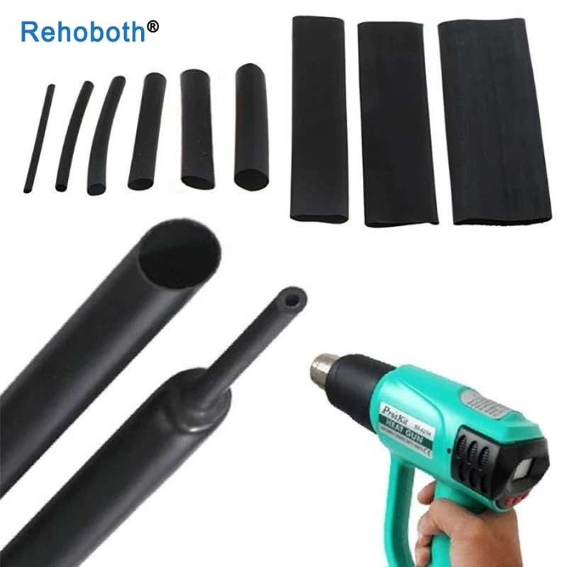 Черные термоусадочные трубки 150 шт.лот в ассортименте, ассортимент черных трубок 2:1 для обмотки автомобильных кабелей, набор проводов с полиолефиновой ванной