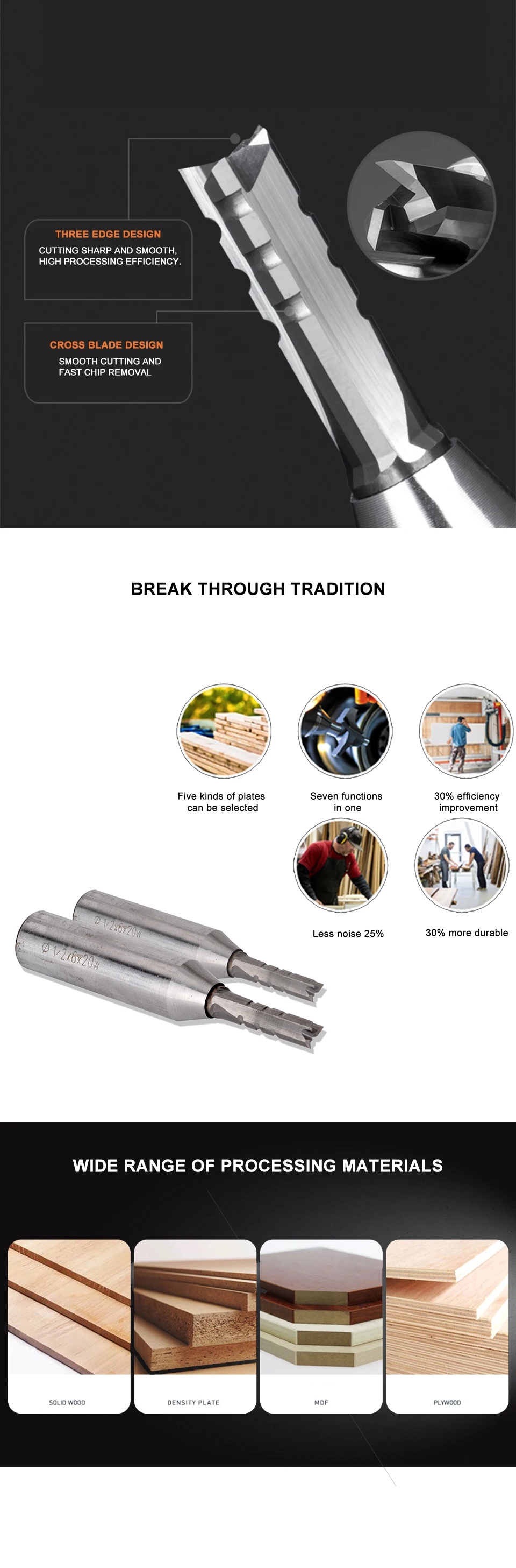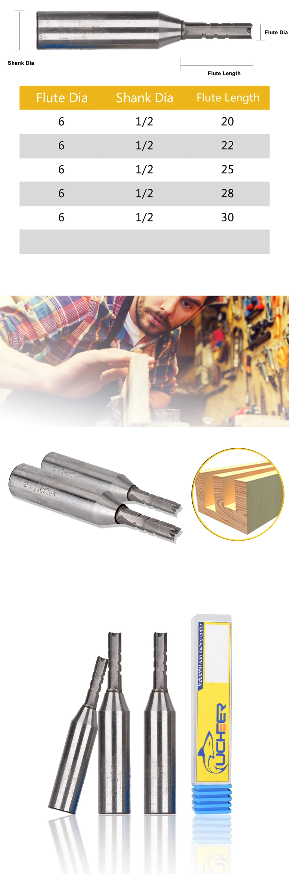 Фреза для деревообработки UCHEER, 1 шт., 3 канавки, 6810 мм, 12 хвостовика