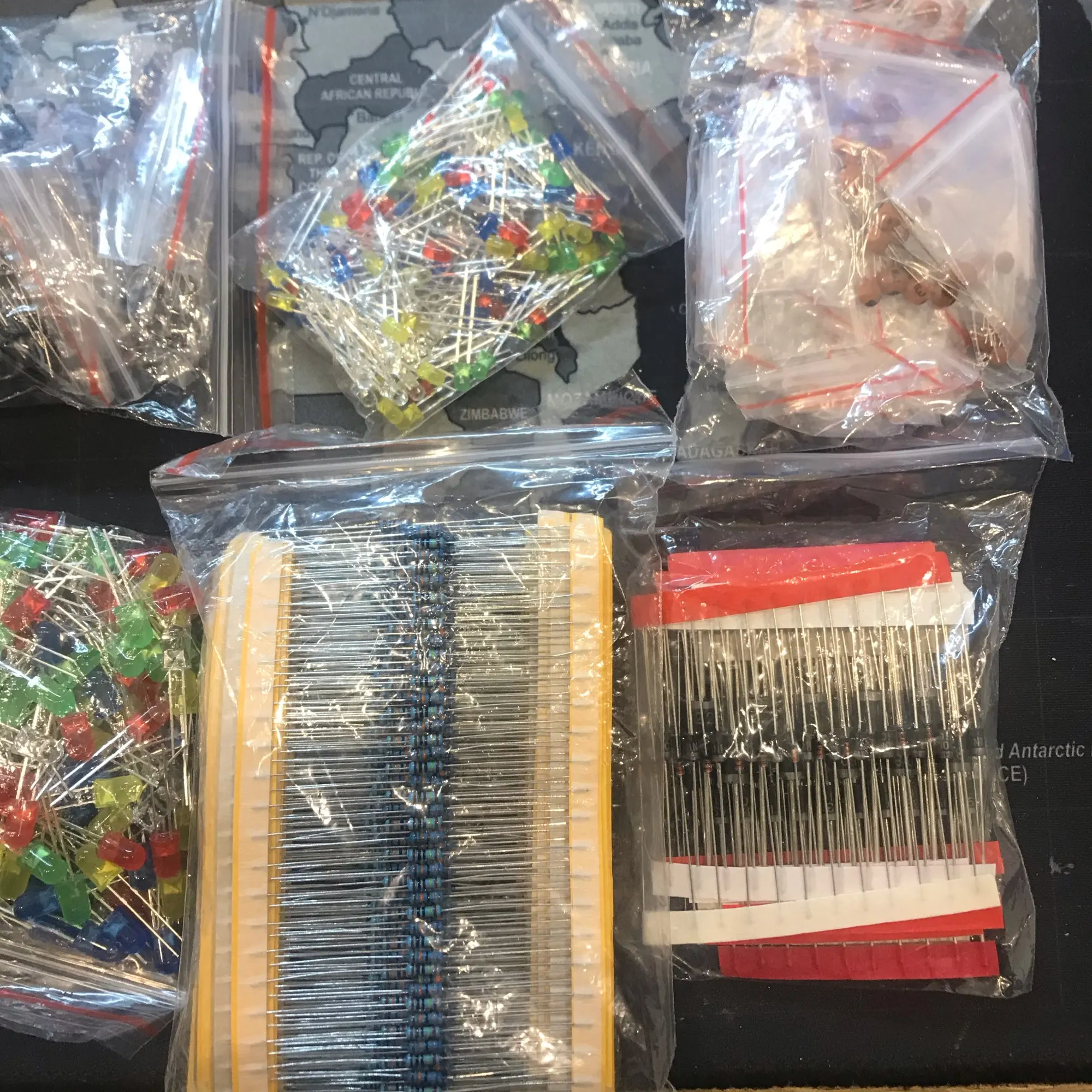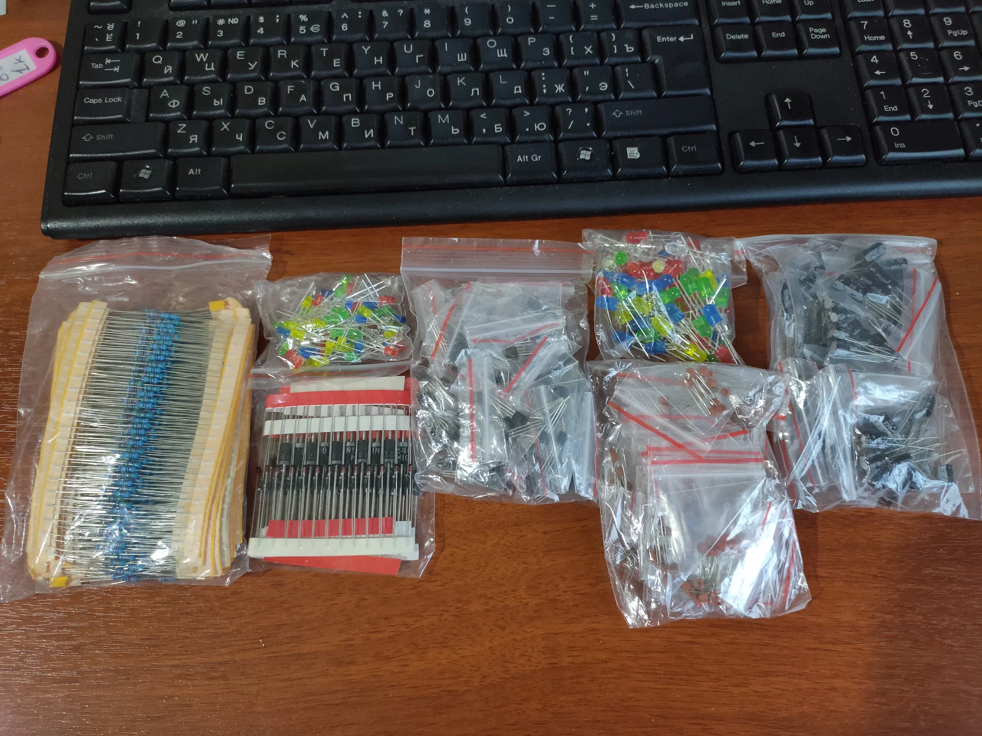 Всего и много, минус только в том что конденсаторы из набора не соответствуют номиналам что электролиты что керамика, хотя и проверял китайским же тестером. Много резисторов и они вот соответствуют тому что на них написано (проверял выборочно по одному, две штуки из номиналов). Диоды и транзисторы целые и выдают одинаковые характеристики (брал по 3). Брал только из-за резисторов, на остальное не стоит рассчитывать если не будет работать .
