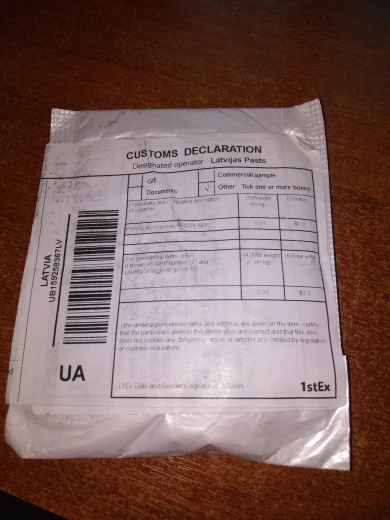 Товар так и не дошел. Скорее всего потерялся на таможне.
