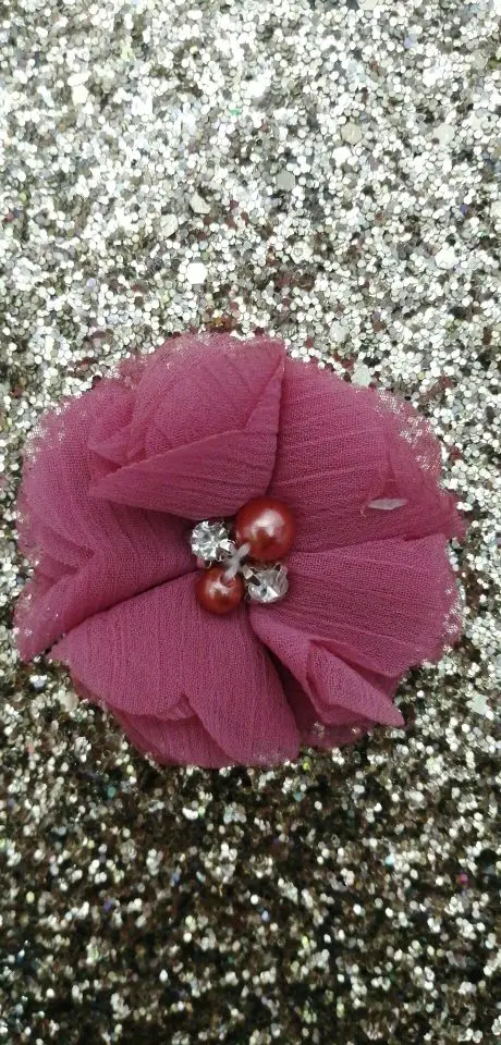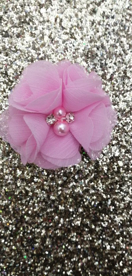 10 шт.лот, Милые шифоновые цветы с жемчужными стразами для маленьки...