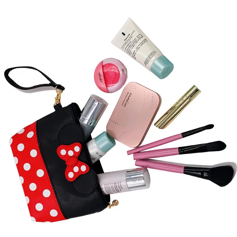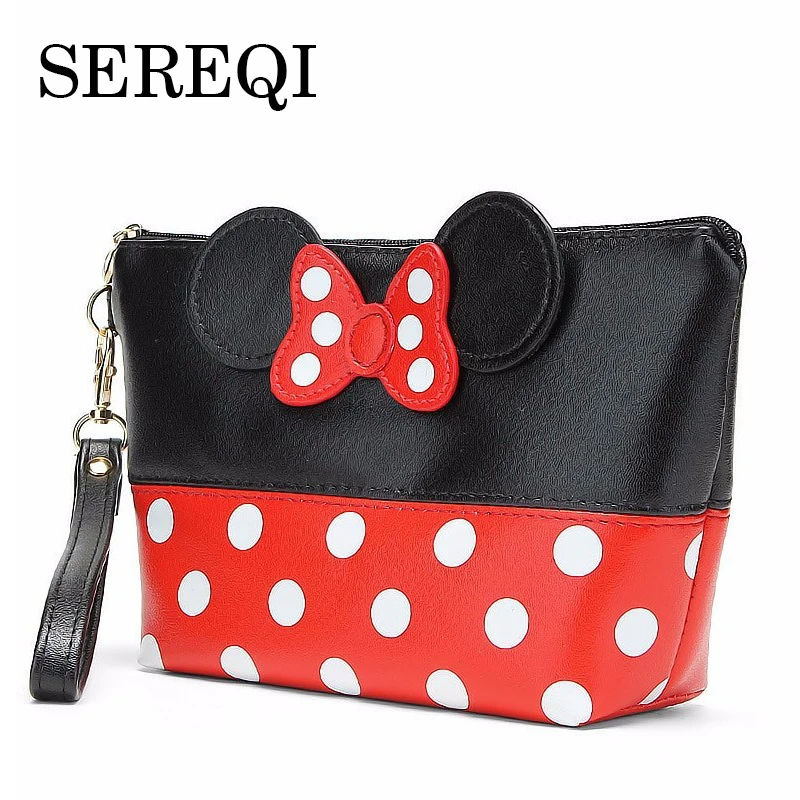 Дорожный Органайзер SEREQI из искусственной кожи в горошек с Микки Маусом, модная косметичка для туалетных принадлежностей, качественная сумка-Органайзер, чехол для красоты