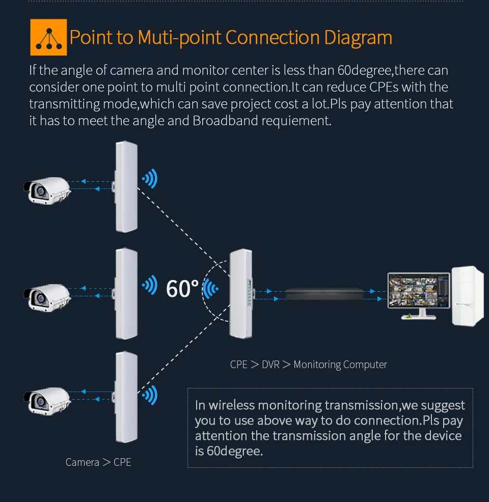 Уважаемый клиент, если вы хотите передавать сигналы Wi-Fi на большие расстояния, мы рекомендуем вам приобрести два CPEs в качестве wifi передатчиков и приемников. Это увеличит расстояние передачи, и сигнал будет лучше.