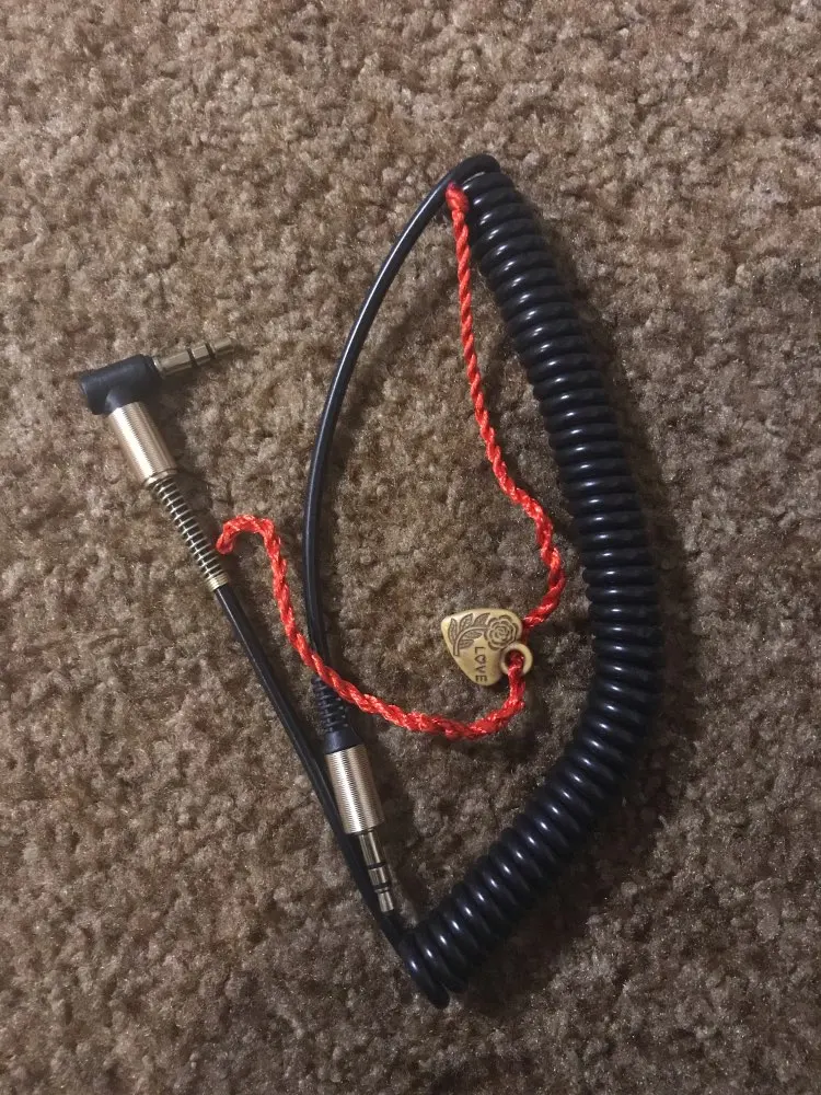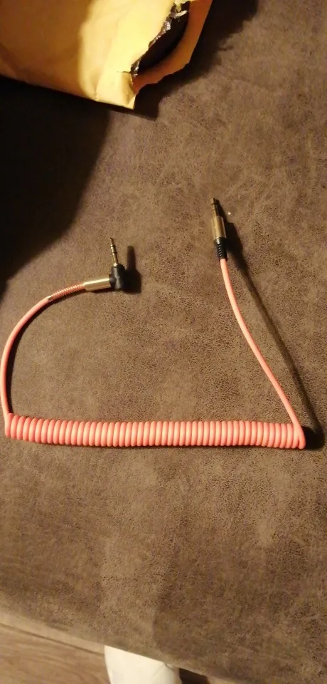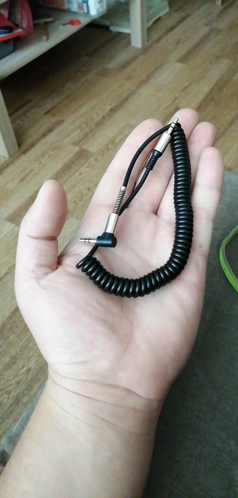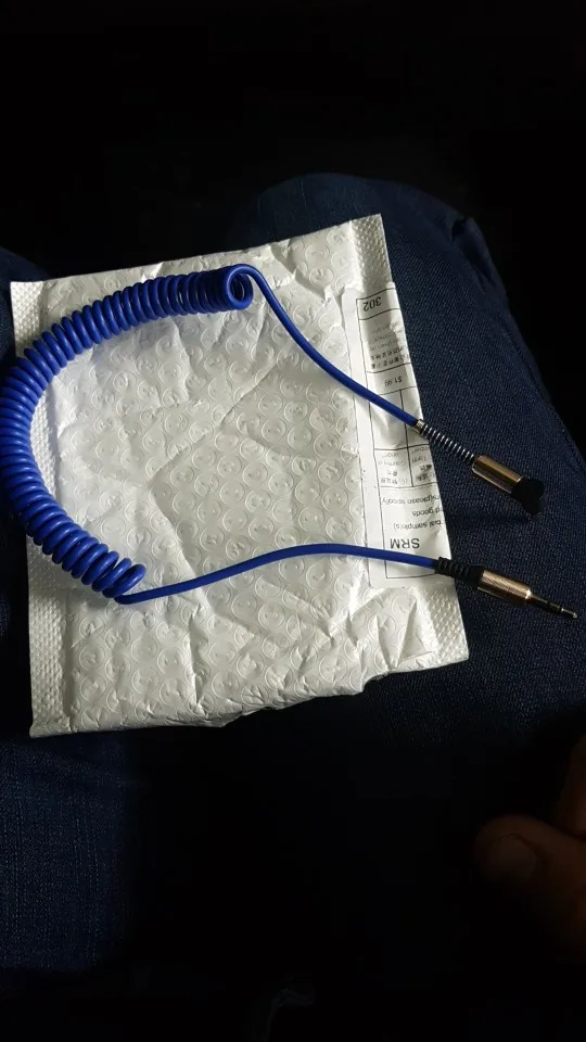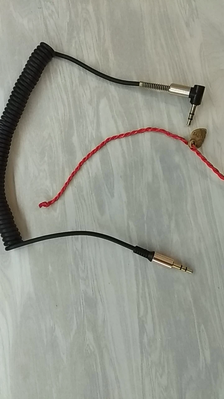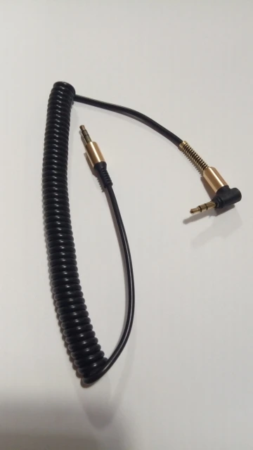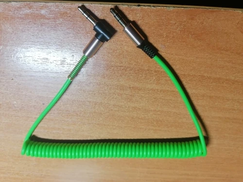 Заказ шёл 24 дня (15.10-07.11) в Санкт-Петербург. Пришёл в пакете с другими заказами, сделанными в тот же день. Упаковка была с пупырками. Провод в нерастянутом состоянии 42см, за счёт пружины тянется до 160см, а потом прилетает в лоб. Разъемы mini Jack сделаны хорошо. Провод рабочий. Единственное что - пахнет довольно резко и неприятно. Надеюсь этот запах выветрится. В подарок положили ещё тоненький браслет, мелочь, а всё равно приятно. В целом - заказом довольна, продавец хороший, спасибо ему (♡ω♡ )