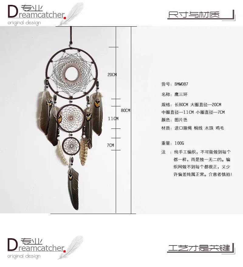 Орел перо Ловец снов большой 3 железное кольцо внутренняя Подвеска Индийский брикет подарок свадебное украшение большая мечта
