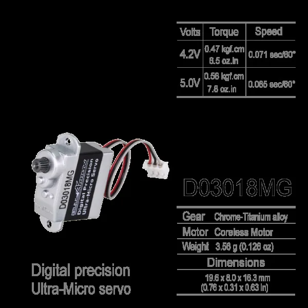 Описание:Наименование товара: модификация обновления D03018MG цифровой сервоприводВес: 3,56 гРазмер: 20*8*16,3 ммКостюм для XK K120 / K130 RC вертолета