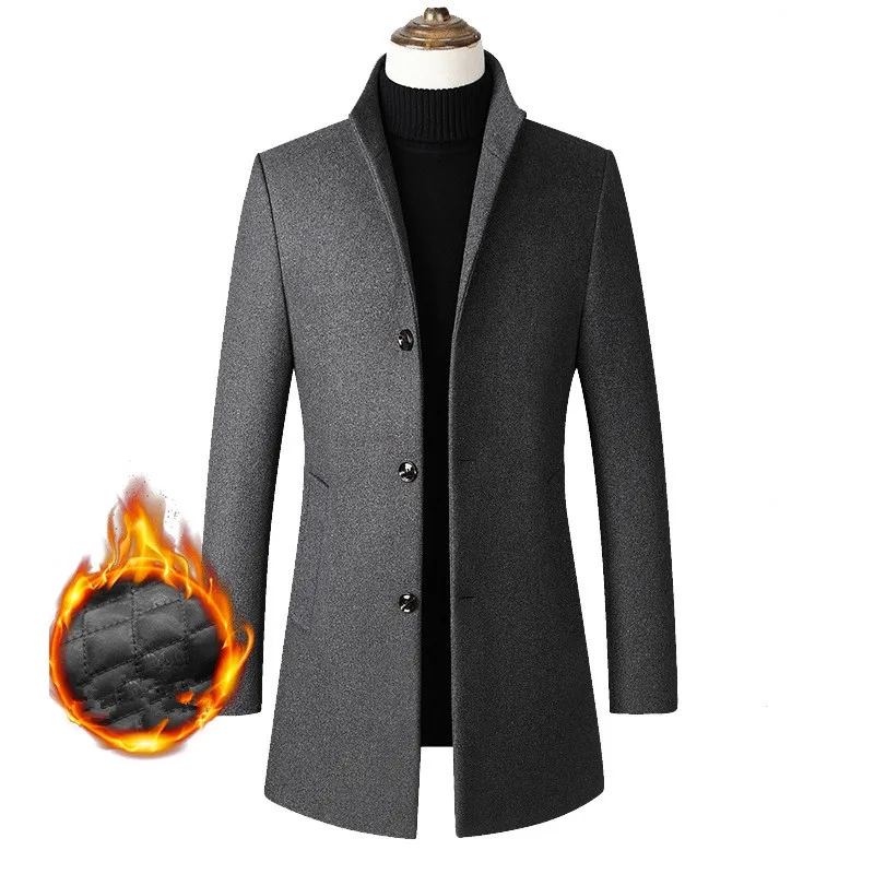 2020 Зимняя шерстяная теплая куртка, мужское повседневное приталенное шерстяное пальто с воротником-стойкой, пальто, пальто, ветровка, длинный хлопковый плащ, 4XL