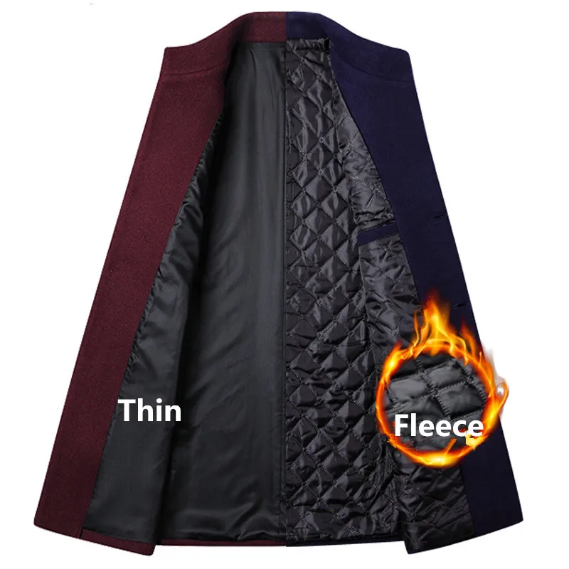 Пальто мужское, зимнее, шерстяное, с воротником-стойкой, ветровка, длинное, 4XL, 2020