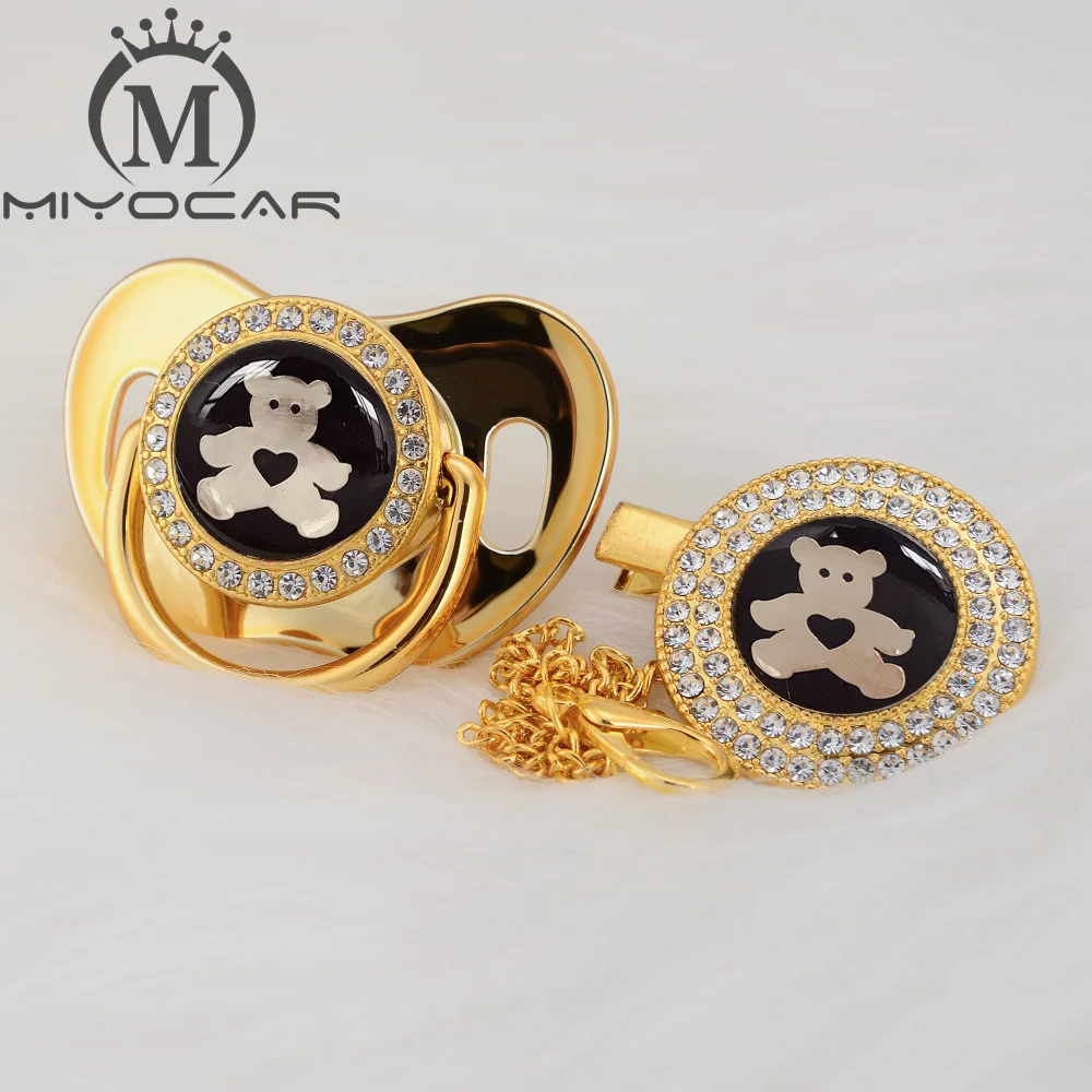 Соска-пустышка с золотистымсеребристым мишкой и зажимом для соски MIYOCAR, без бисфенола А, уникальный дизайн безопасный, не содержит БФА GBEAR