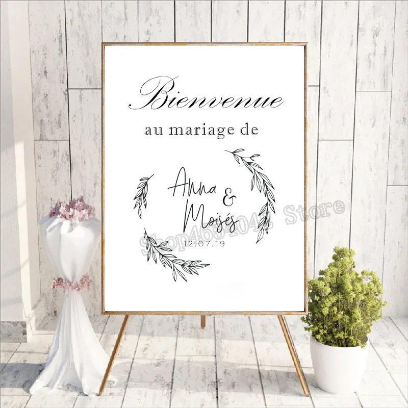 Французский Bienvenue Добро пожаловать Свадебный знак наклейка наклейки простой свадебный Декор Съемные Виниловые наклейки на заказ Персонализированные G392