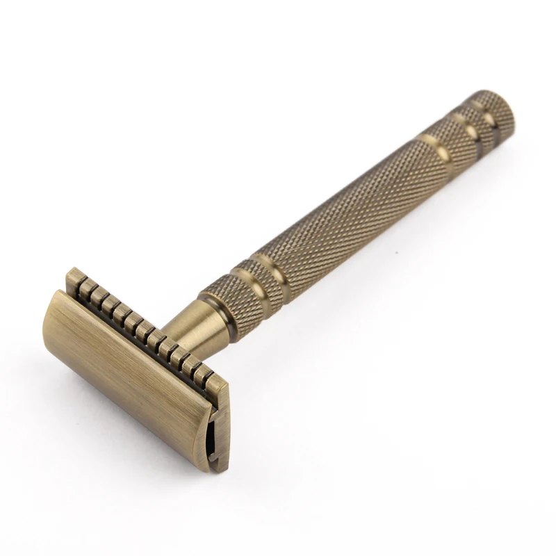 Мужская бронзовая Классическая двусторонняя ручная бритва YINTAL, безопасная бритва с длинной ручкой, 1 Бритва, 1 базовый набор, Водонепроницаемая бритва, не ржавеет