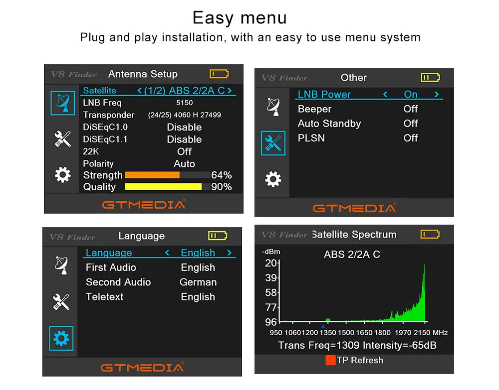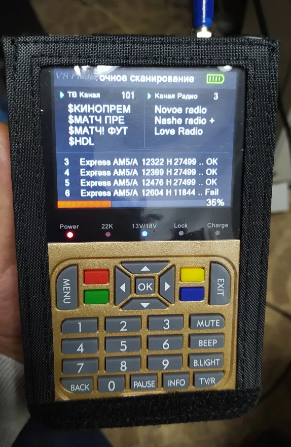 Брал для непрофессиональной настройки нашего триколора. В списках спутников он отсутствует,но можно вбить транспондры вручную. Попробовал прошить последней прошивкой, но она тоже далека от идеала. Всё также максимальный уровень сигнала не 100, а 85 процентов. Со свое задачей справился хорошо. В пасмурный день выставил тарелку с 80 процентами силы и 85 процентами качества. Телевизор показывает идеально.