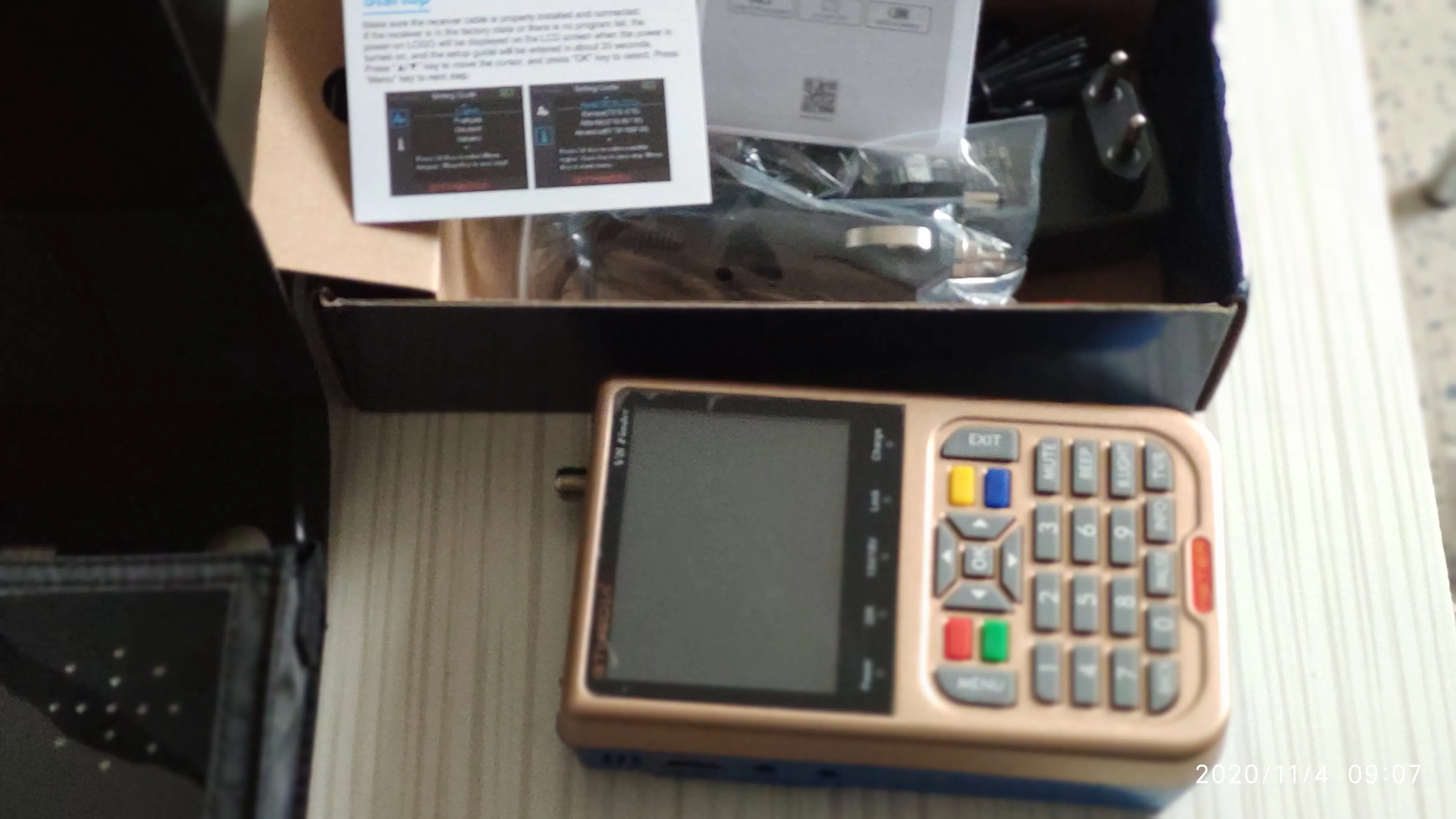 Доставка из России. коробка акккуратная, комплект соответствует описанию. прибор рабочий. прошивку скачал последнюю с официального сайта. стояла прошлогодняя и список найденных программ не отображался. после обновления заработало. не сразу понял почему не показывает на весь экран.... оказалось просто выйти из настроек надо было. потом программы клавишами вверх/низ переключает. громкость звука лево/право.