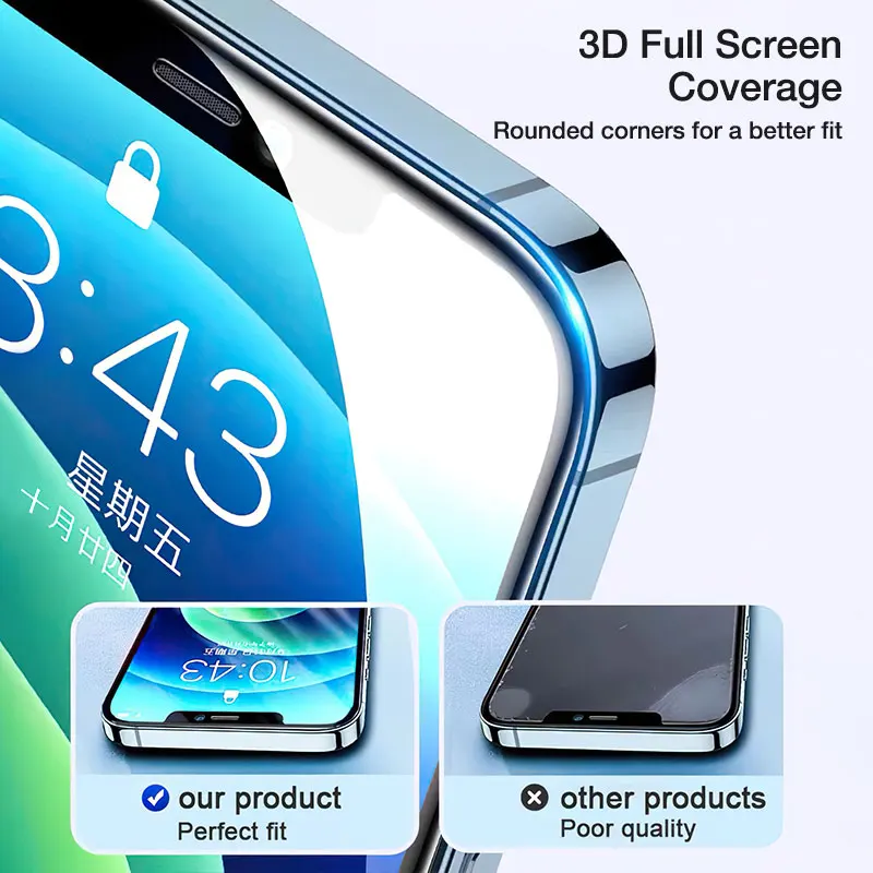 Божественное стекло, а стоит копейки. Встал на 12 айфон идеально, использую с силиконовым оригинальным чехлом, не цепляет. От края стёкла до бортика чехла примерно 1-1,5 мм. А какое тут олеофобное покрытие... просто сказка, в разы лучше чем стекло самого айфона! Крайне рекомендую!
