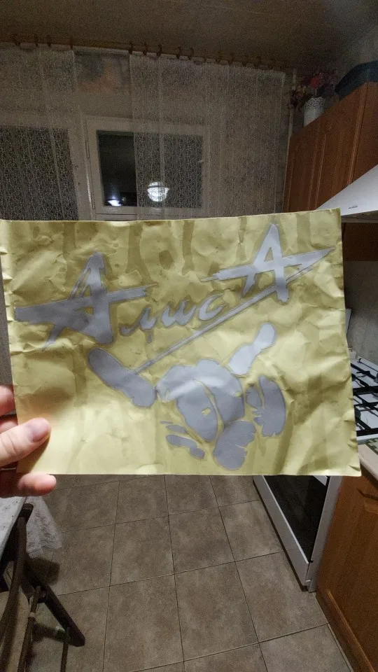 Всем гареть!)))заказал наклейку 28.11,а получил за неделю до дня рождения Кости!) до этого заказывал подобные наклейки, одна уже полгода на машине-полет нормальный, немного непонято в самом начале, как отделить буквы, ну и при наклейке права на ошибку нет, имеют светоотражающий эфект, смотрятся, сами понимаете-круто! я считаю, что у Алисы один из самых лучших логотипов! рекомендую!))
