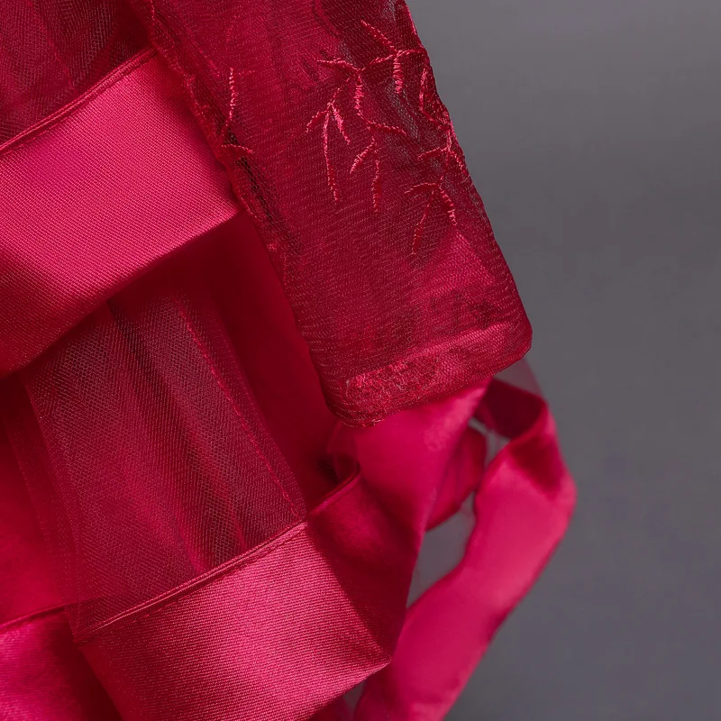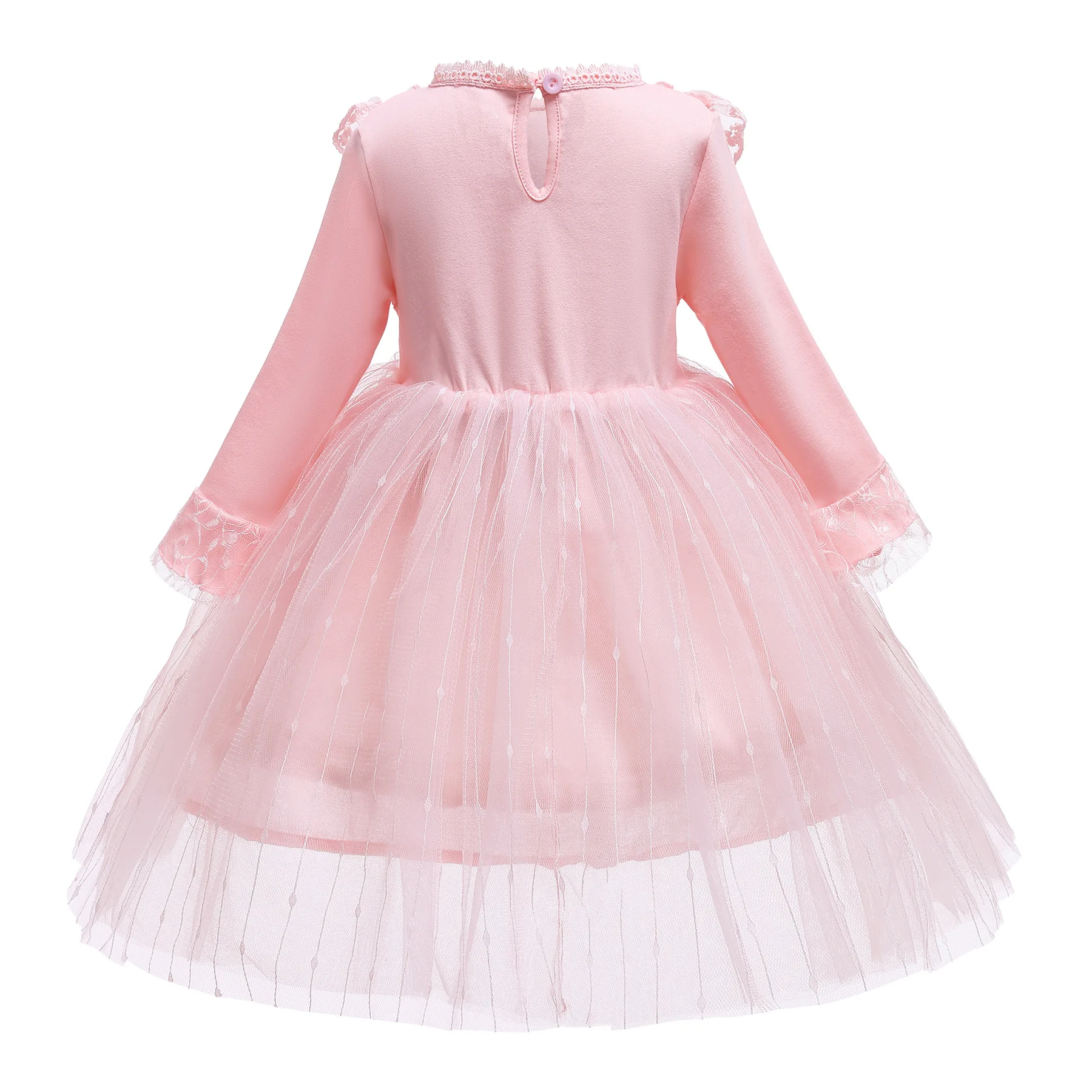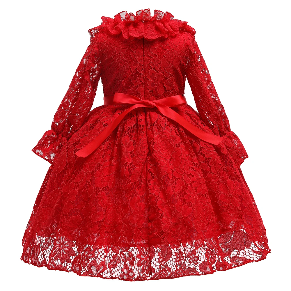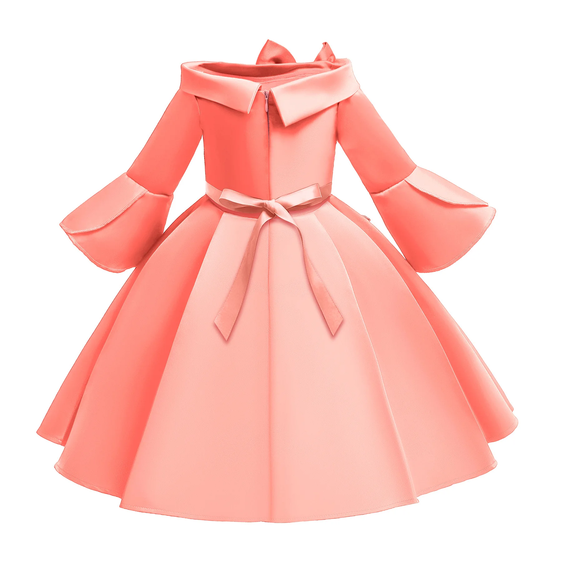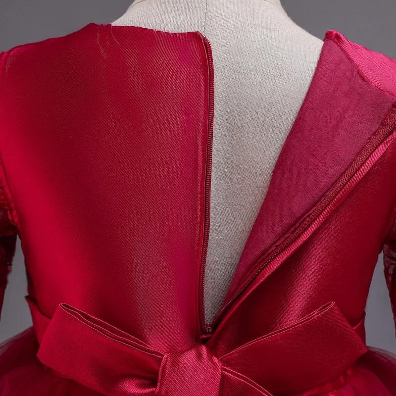 Бальное платье с длинным рукавом и блестками для девочек, атласное элегантное кружевное платье принцессы с цветами для девочек, одежда для детей на Рождество и свадьбу, официальная одежда