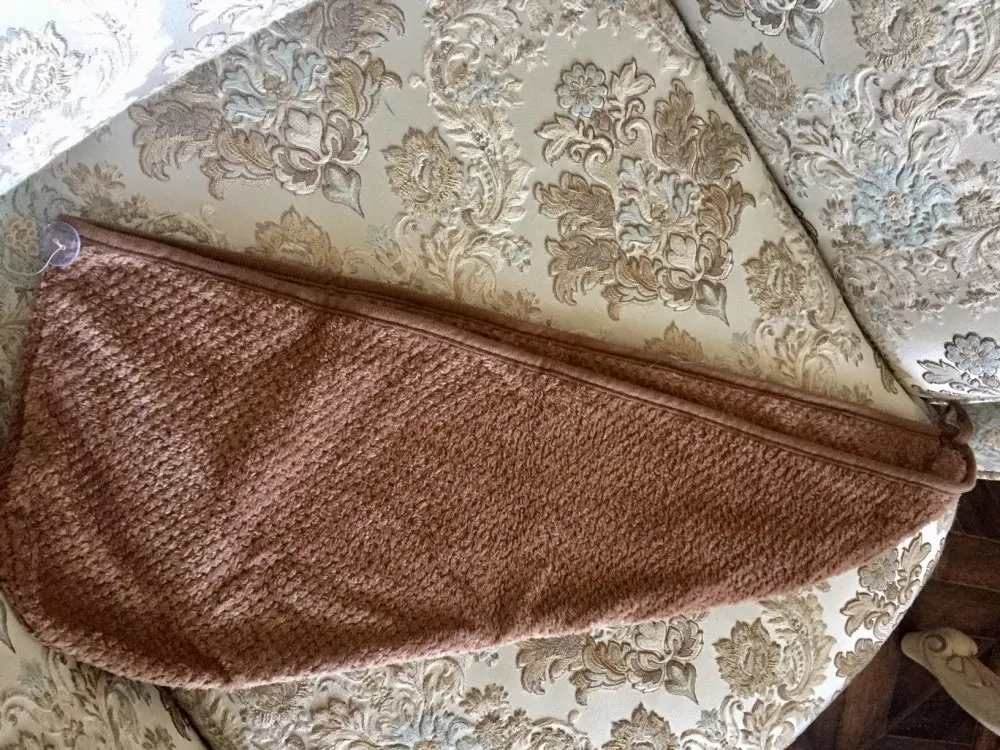Неплохо впитывает, но важнее удобство при сушке волос после мытья. Уже опробовала. Думаю, что для длинных волос маловато, но для моих -до плеч- вполне достаточно. Тесьма пришита ровно. Нитки не торчат. Пришло отдельной посылкой в Краснодар за месяц.
