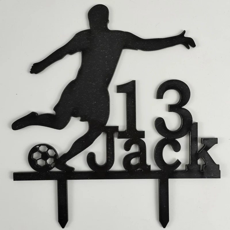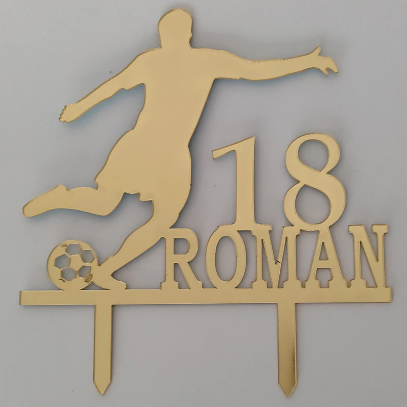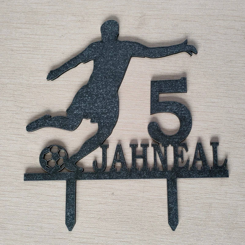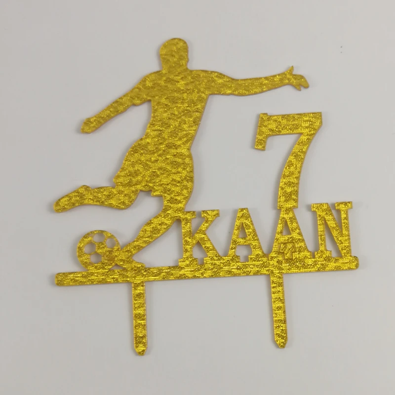 Персонализированный Топпер для футбольного торта с именем на заказ для игроков в футбол, фигуры для футбольных фанатов, украшение для торта на день рождения