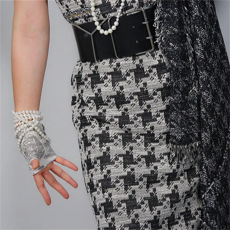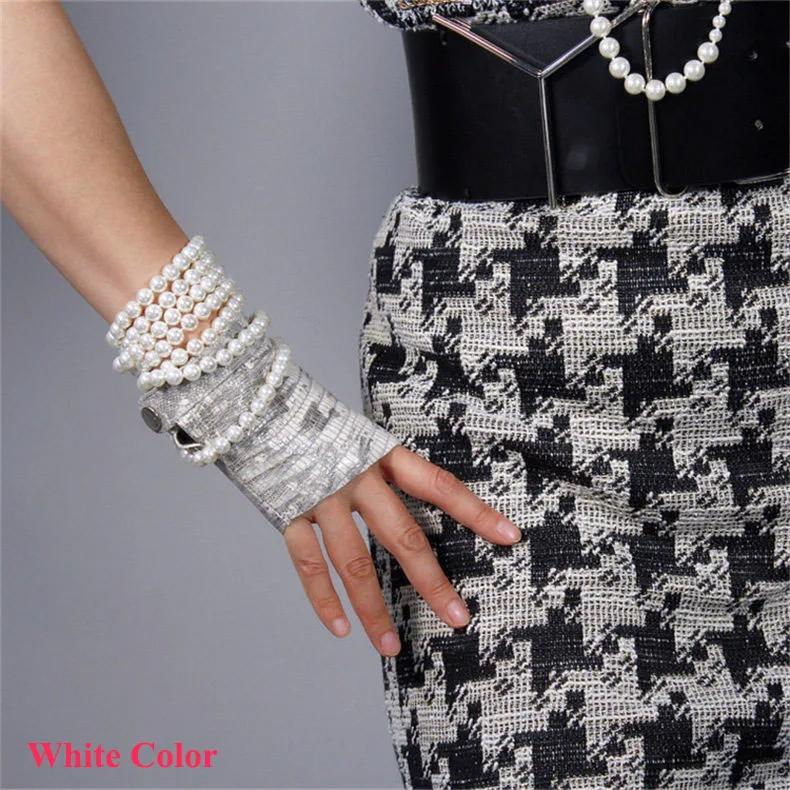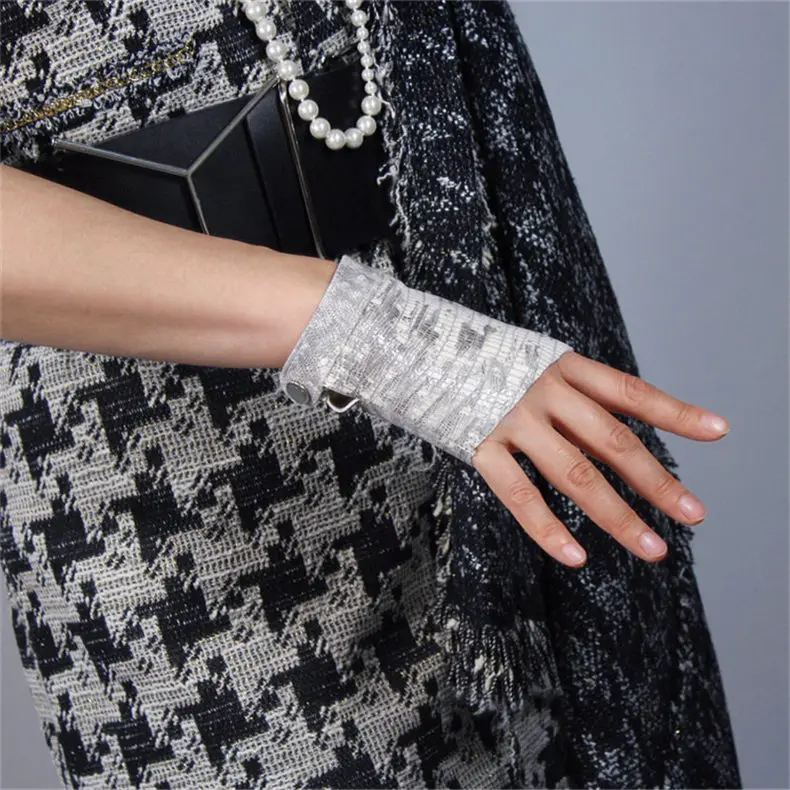 Варежки без пальцев из натуральной кожи, узор в виде белой ящерицы, с рисунком животных, чистая овчина, с половиной пальца, сенсорный экран, белый чистый черный, WZP15