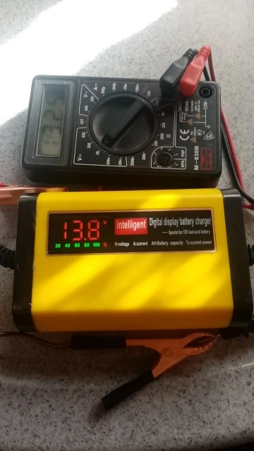 Получил, проверил. При заряженном аккумуляторе на скутере, показывает 13.8 вольт и заряд 100%.позже проверю на разряженном.