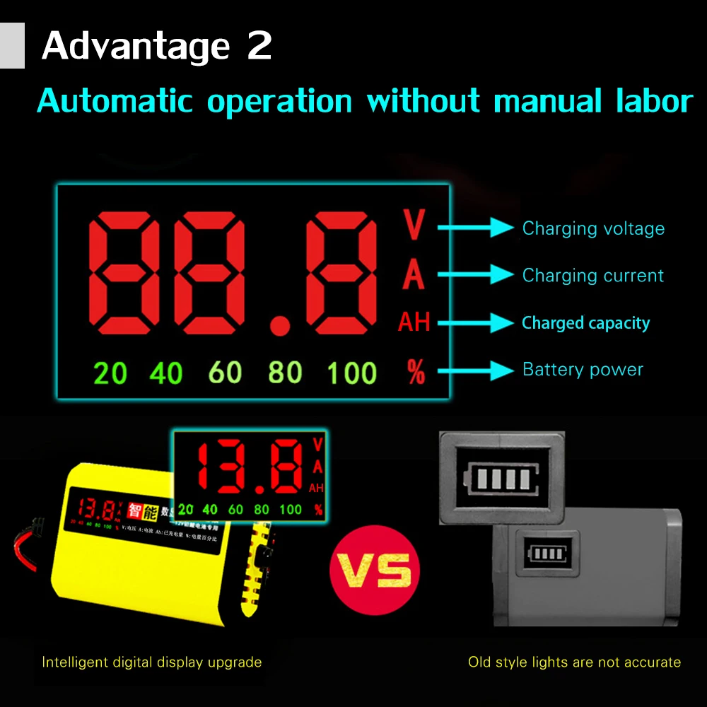 Зарядное устройство для автомобиля, мотоцикла, 12 В, 2 А, полностью автоматическое, 3 этапа, свинцово-кислотные AGM гелевые, Интеллектуальный ЖК-дисплей, стайлинг автомобилей