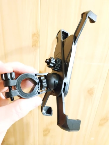 Хороший держатель, позволяет крепить телефоны начиная с довольно маленьких габаритов, до лопато-фонов, регулируемый зажим.
