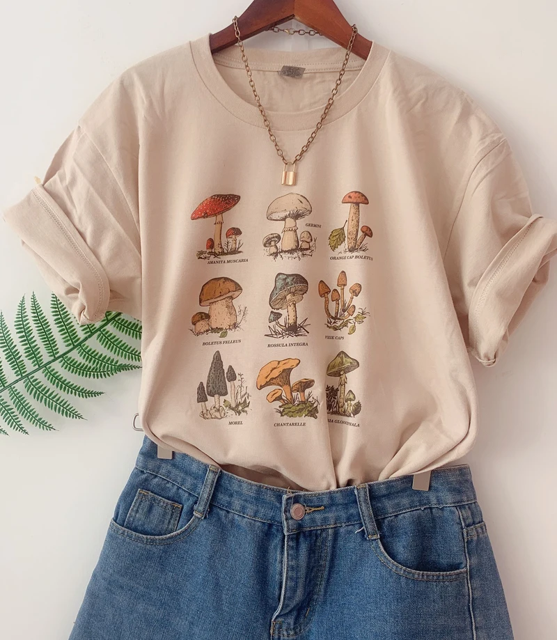Футболка женская оверсайз с принтом грибов, модный винтажный топ с ...