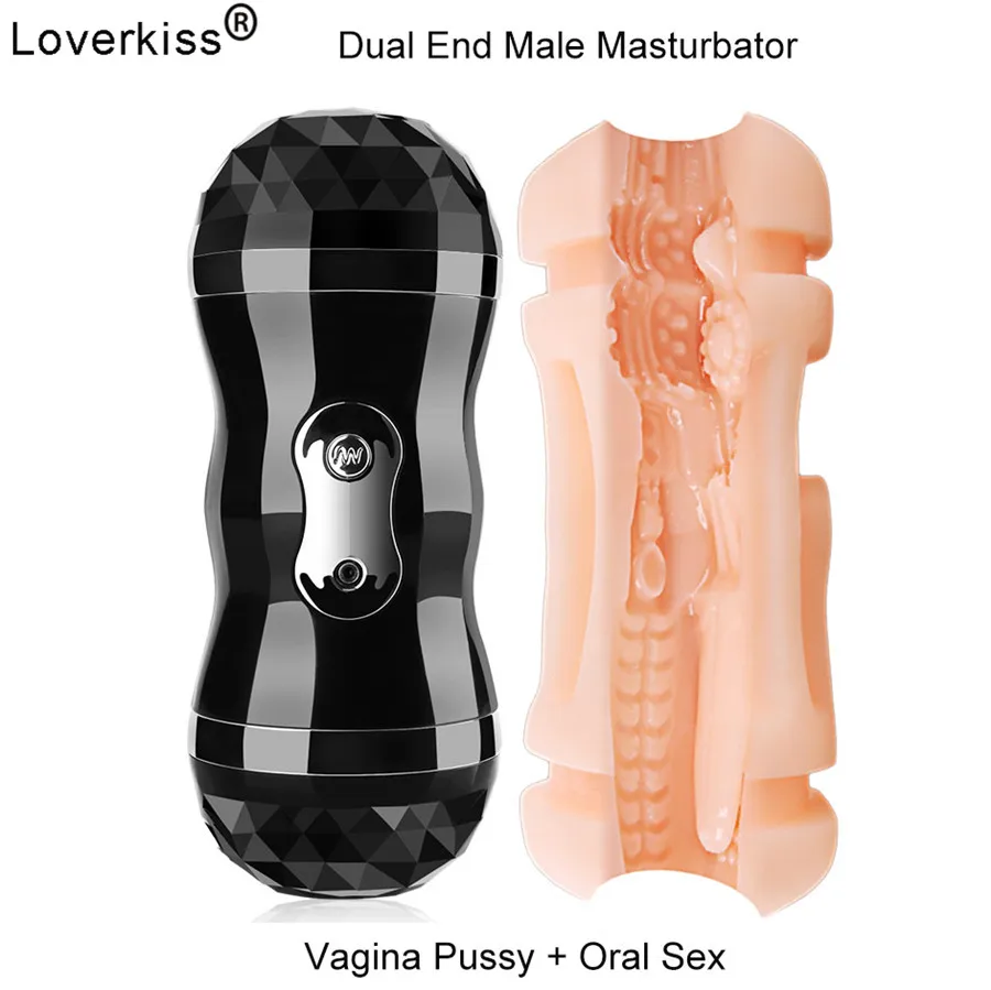 Силиконовая вагина, настоящая киска и оральный секс, Мужской мастурбатор с двойным концом, чашка для мастурбации, вибратор, секс-игрушки для мужчин