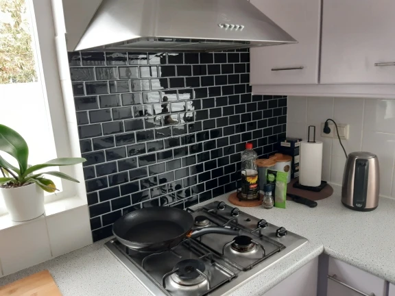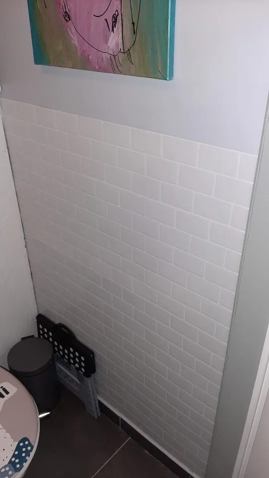 Отличная маленькая плитка, нужно немного больше клея, чтобы приклеить, но моя стена грубая, так что это нормально