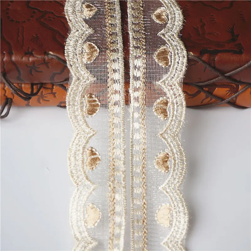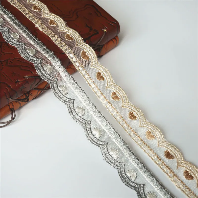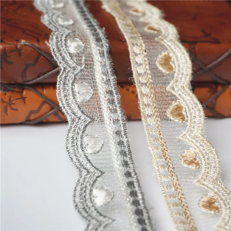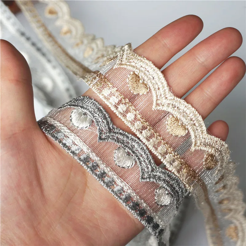 2 ярда 3 см вышитые бежево-серые кружевные отделки винтажные сердца цветы волна сетка хлопковая отделка нашивка свадебные аппликации