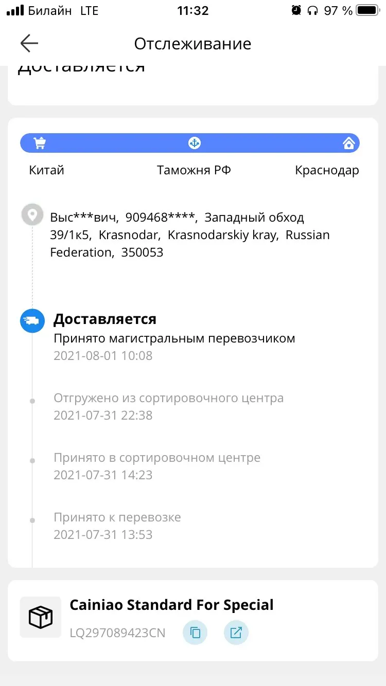 Страна: SG Доставка: Cainiao Standard For Special Goods 09.07.2021