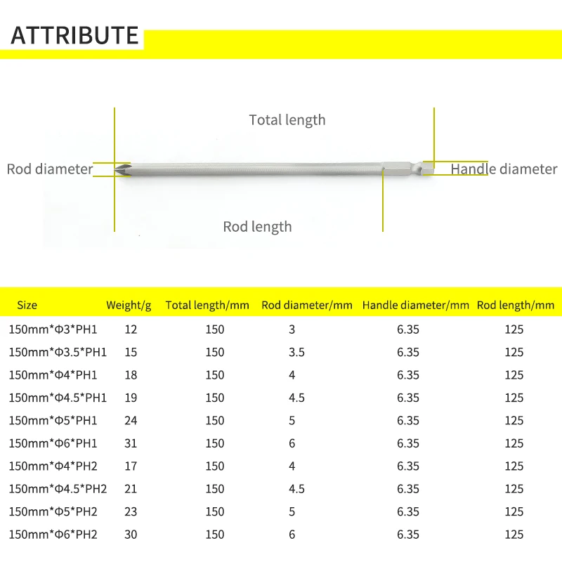 10 шт., насадки для электрической отвертки Philips, длина 150 мм