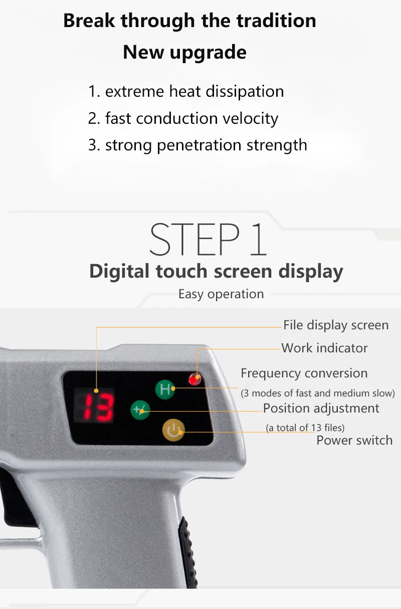 Этот коррекция кости пистолет может быстро расслабить нерв, мгновенное сжатие нерва органа, чтобы восстановить нормальную функцию органа, сделать функцию организма быстрое восстановление, одновременно активную секрецию железы, позвоночник fuzheng, расслабление мышц, сглаживание зубов и меридианов, без хирургического вмешательства, Не принимайте лекарства, не делайте инъекции в позвоночник.