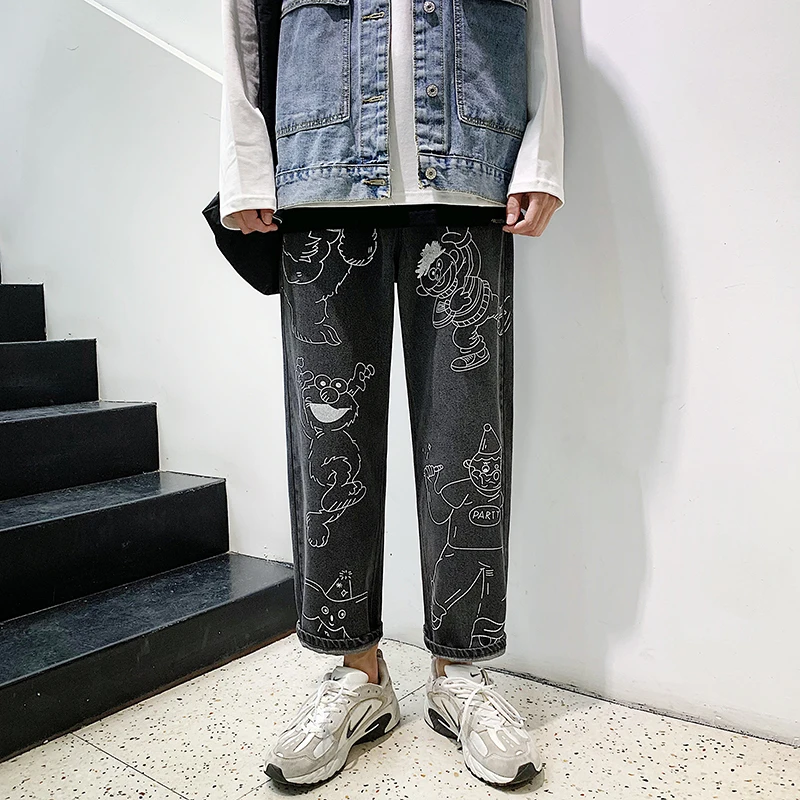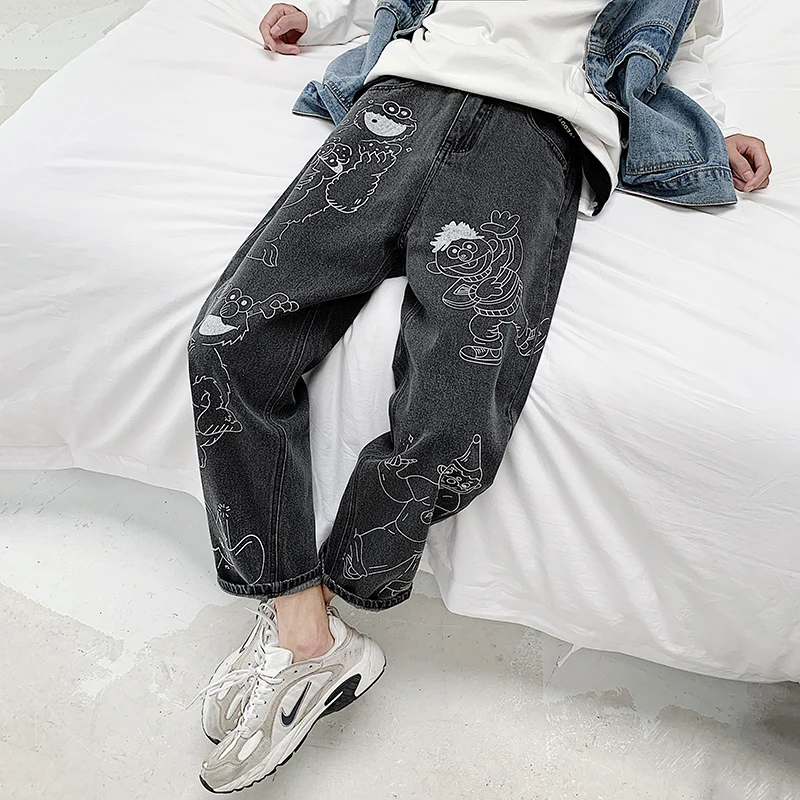 2020 мужские синие повседневные брюки с мультяшным принтом, мешковатые мужские классические джинсы-карго с карманами, байкерские джинсовые брюки S-2XL