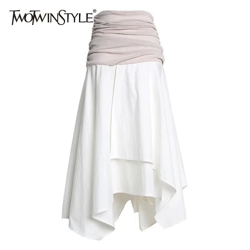 Женская Повседневная миди-юбка TWOTWINSTYLE, летняя миди-юбка с высокой талией, рюшами и асимметричным подолом, 2020