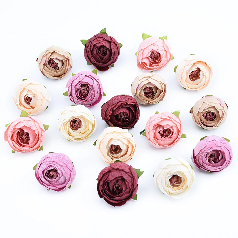 Шелковые чайные бутоны, розы, Рождественское украшение для дома, свадьбы, сделай сам, Подарочная коробка, Искусственные пластиковые цветы для стен, 10 шт.