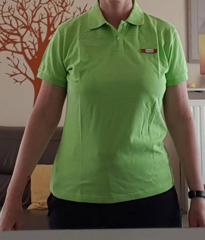 Размеры в обтяжку. Поэтому обратите на предупреждение продавца - добавить 1-3 см к вашим размерам. Поло реально женское - застёжка на лево и вырез воротника под аккуратную женскую шейку. Цвет почти как на фото.